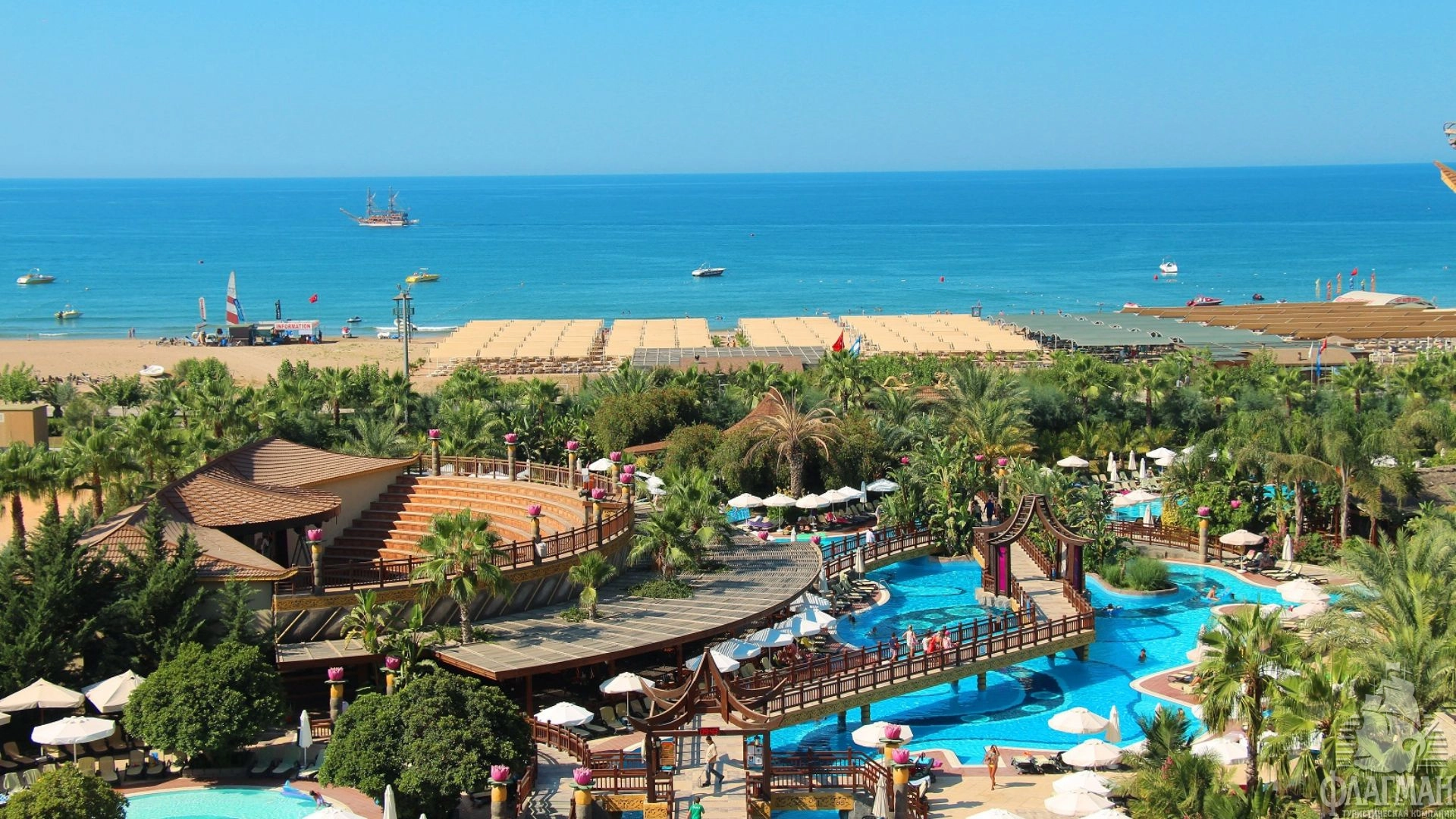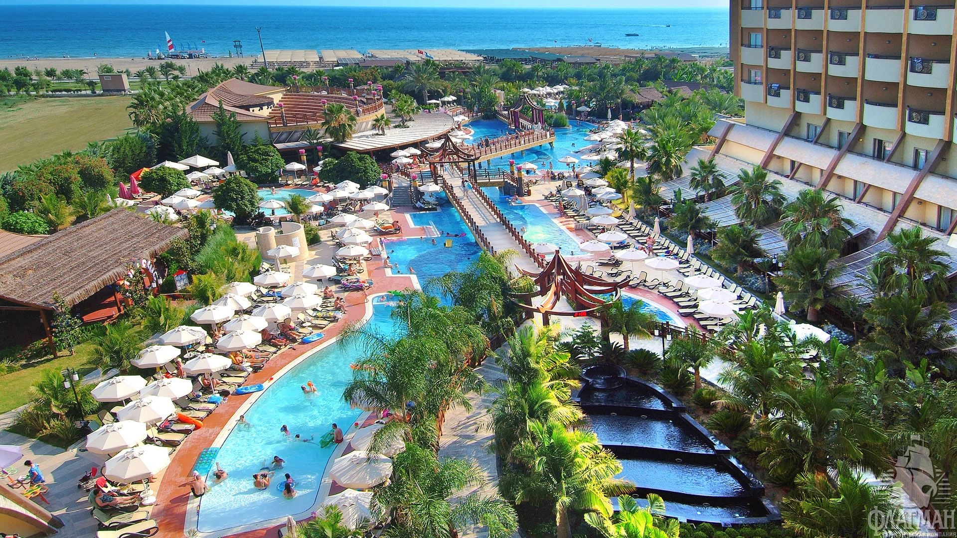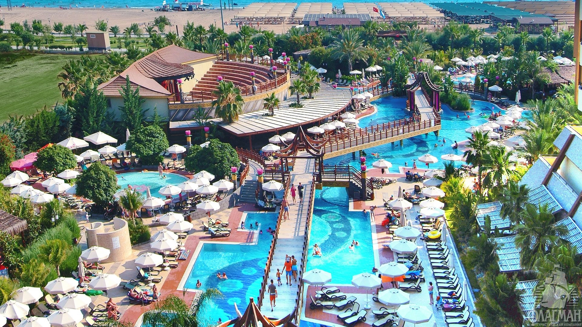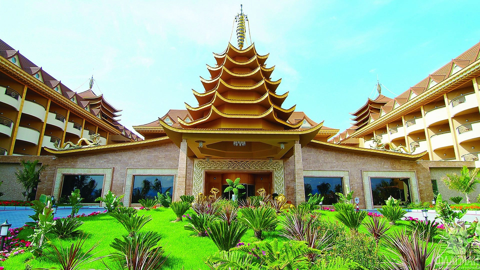 Роял Драгон Отель 5* – гостиница с необычной архитектурой напоминающей пагоды Юго-восточной Азии. В отеле просторные номера, качественное и разнообразное питание, территория небольшая, но очень зеленая и насыщена различными элементами инфраструктуры: бассейны, аквапарк с горками, бары, рестораны, амфитеатр в котором проходят вечерние шоу, детский клуб, луна-парк, теннисные корты, зал для фитнеса, СПА-салон и конференц-залы. Находится на первой линии у моря, свой песчаный пляж - через проминад от остальной территории. Рекомендуем для активного семейного отдыха – гостям предлагается множество развлечений для взрослых и детей.