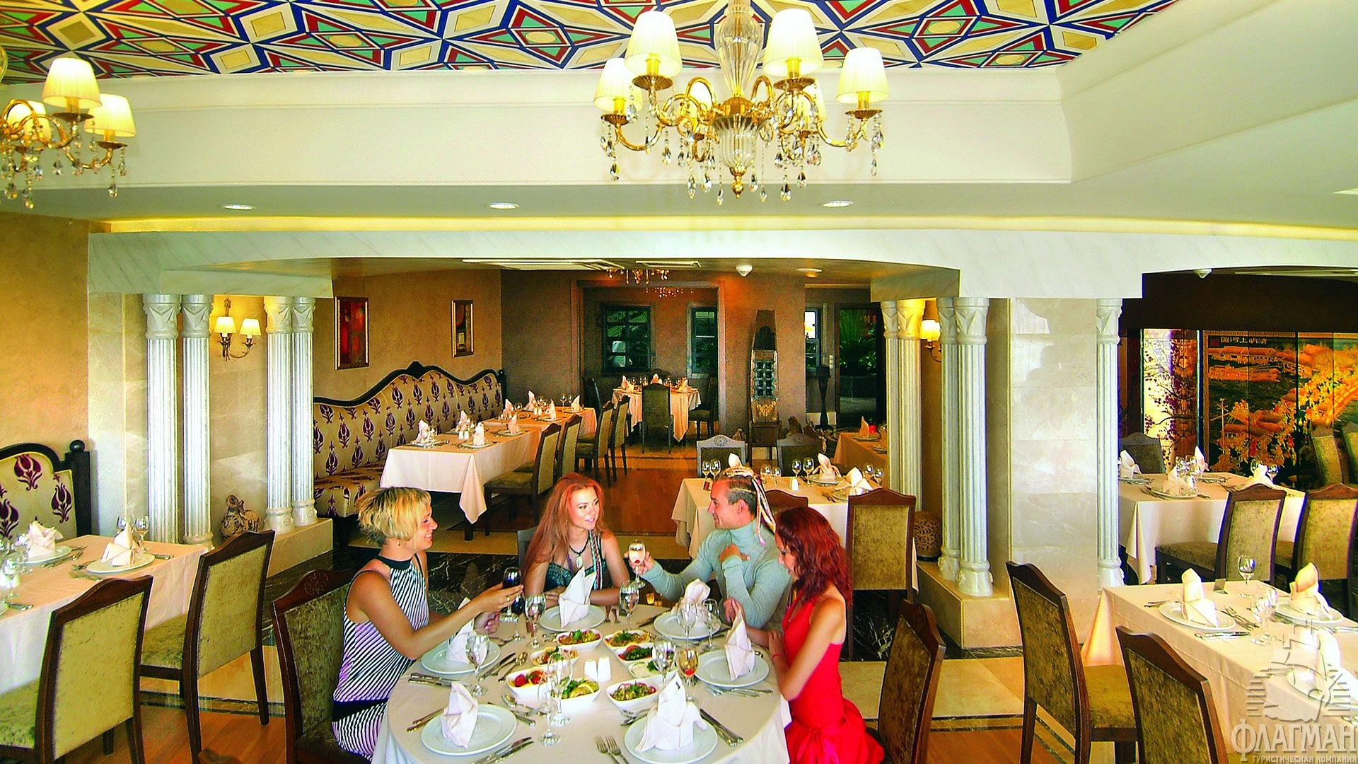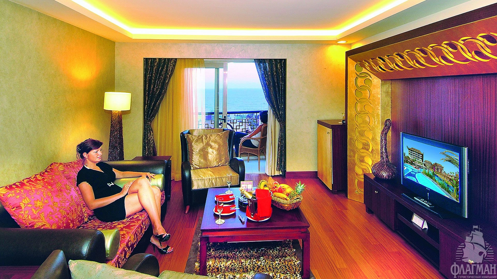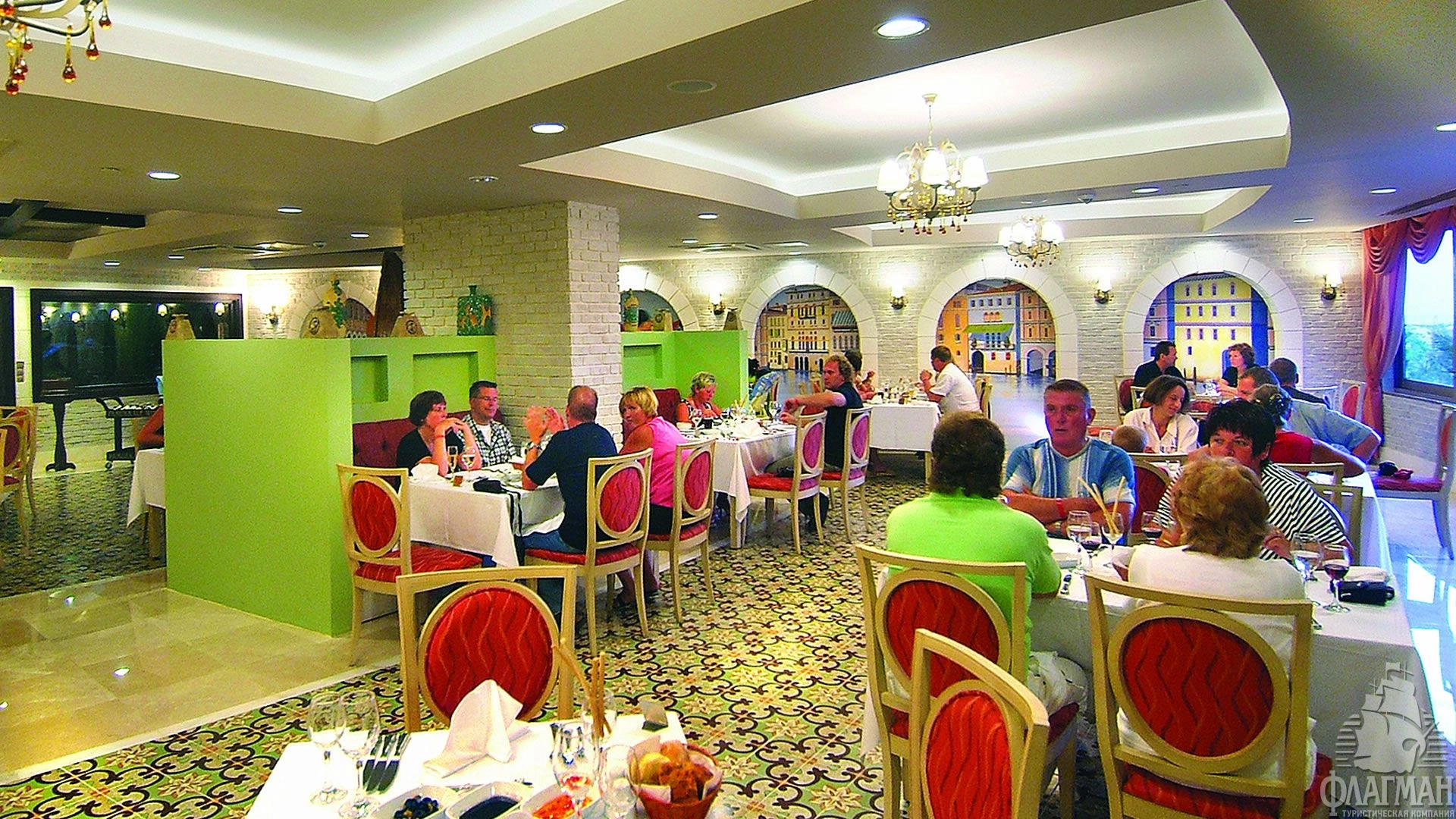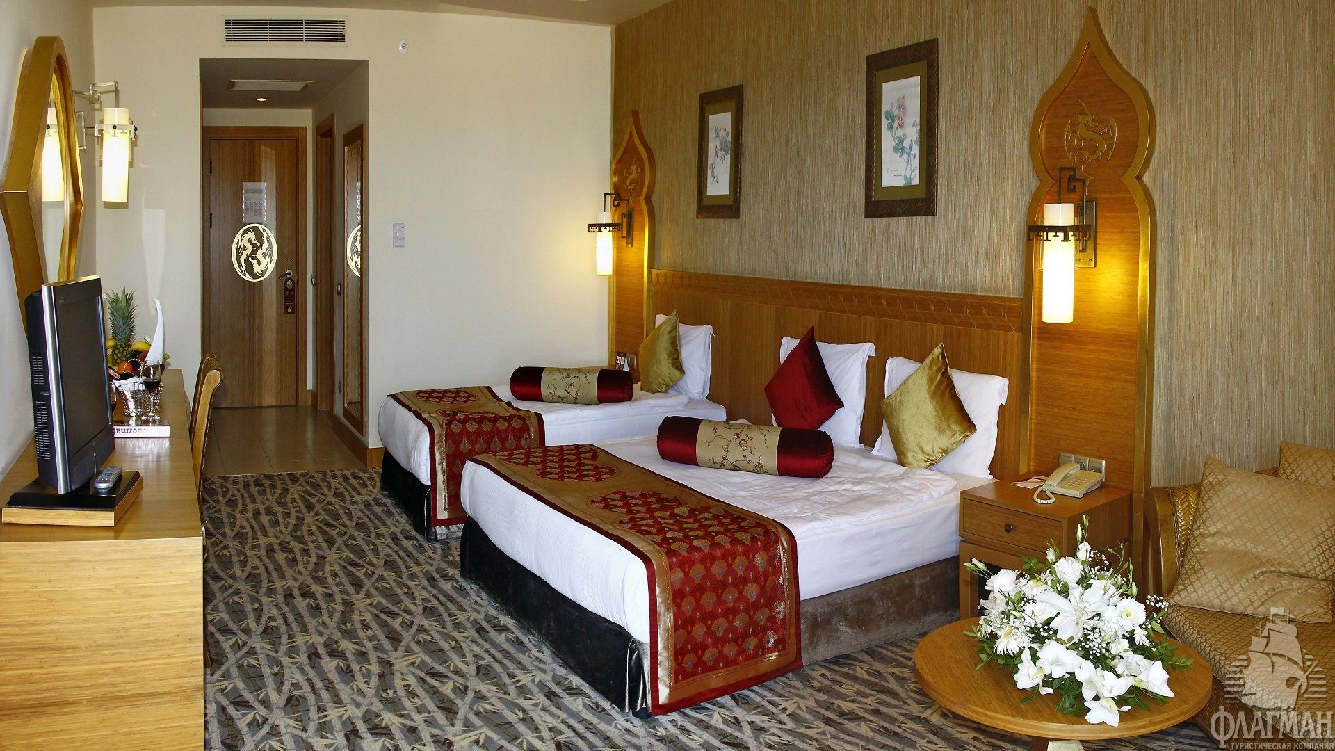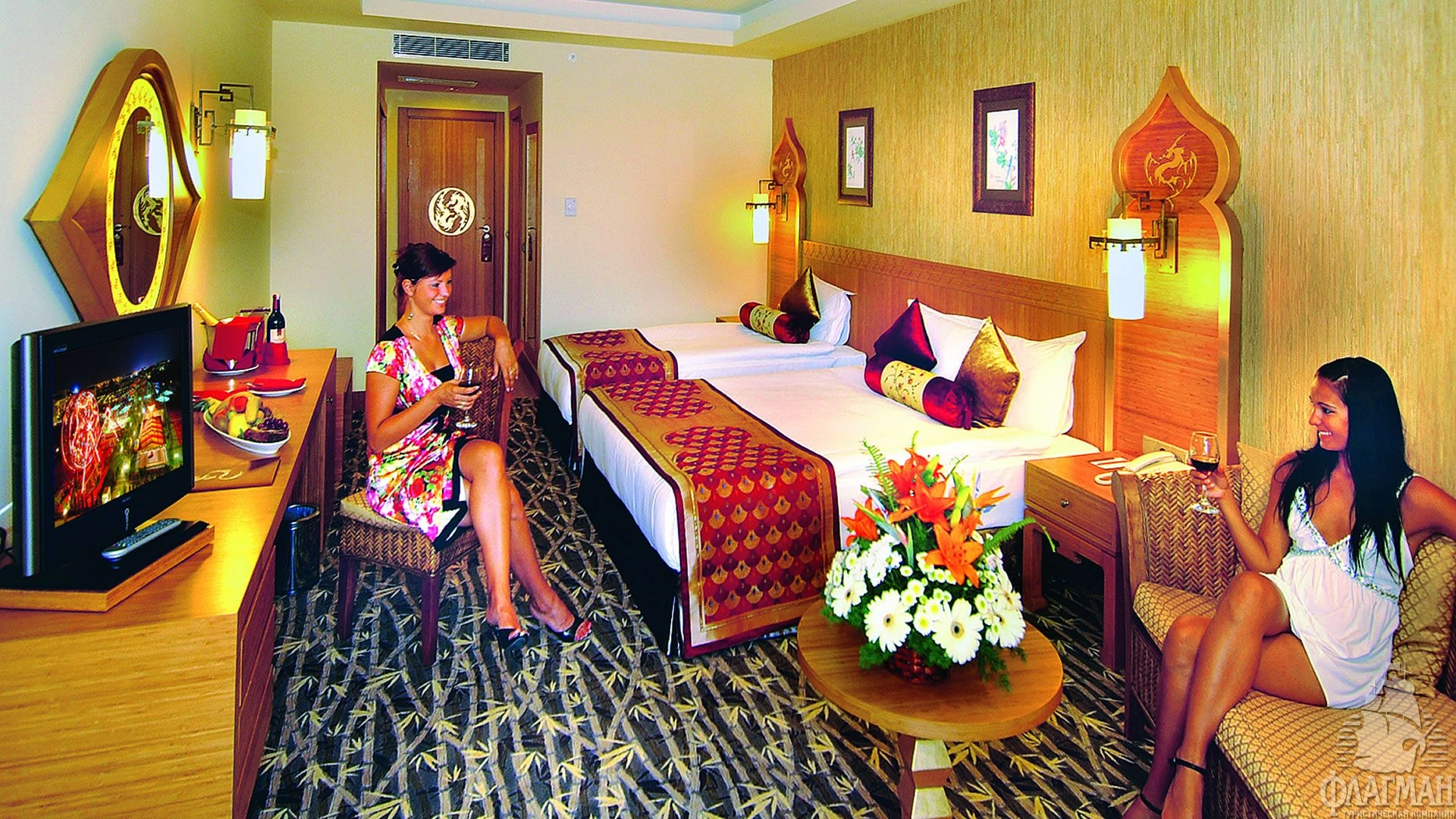 Роял Драгон Отель 5* – гостиница с необычной архитектурой напоминающей пагоды Юго-восточной Азии. В отеле просторные номера, качественное и разнообразное питание, территория небольшая, но очень зеленая и насыщена различными элементами инфраструктуры: бассейны, аквапарк с горками, бары, рестораны, амфитеатр в котором проходят вечерние шоу, детский клуб, луна-парк, теннисные корты, зал для фитнеса, СПА-салон и конференц-залы. Находится на первой линии у моря, свой песчаный пляж - через проминад от остальной территории. Рекомендуем для активного семейного отдыха – гостям предлагается множество развлечений для взрослых и детей.