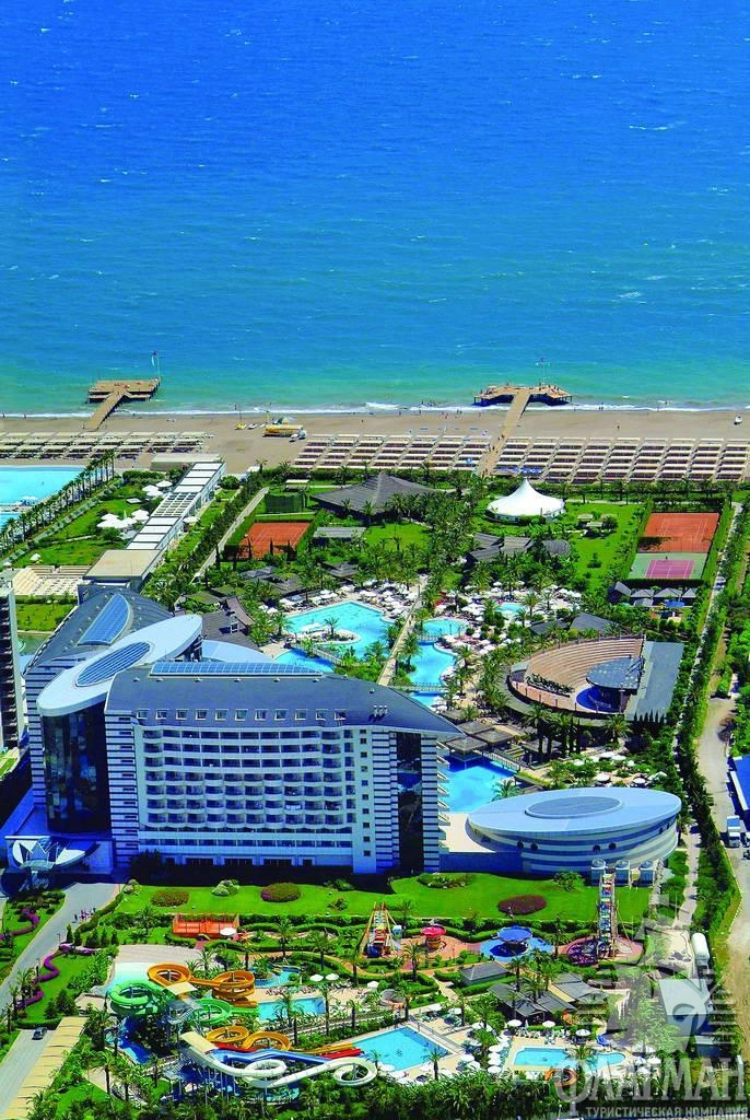 Роял Вингс 5* – семейный отель с компактной ухоженной территорией в курортном районе Лара в пригороде Анталии (трансфер из аэропорта менее 30 мин.). Собственный пляж, первая линия, "ультра всё включено". Как и в большинстве отелей в этих местах, в гостинице просторные номера, в наличии весь необходимый набор удобств и услуг. Отмечаем большой выбор развлечений для детей, в том числе неплохой аквапарк и луна-парк. Работает активная анимационная команда и проводятся спортивные мероприятия.