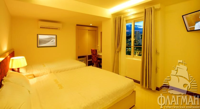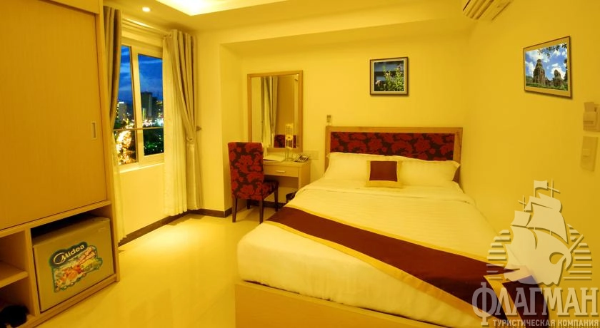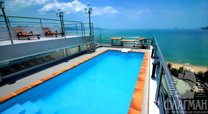 Расположен в городе Нячанг, на берегу, через дорогу от пляжа (50 м), в 10 минут ходьбы от центра, в 35 км от аэропорта Камрань/Cam Ranh (45 мин езды).