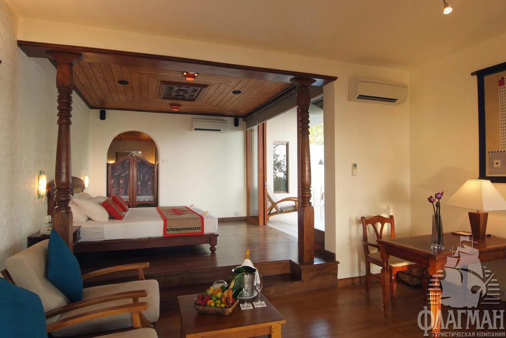 - 13 Superior Suite (65 м2, макс. 2 чел.). Номера на 2 этаже с видом на океан. Зоны спальни и гостиной, гардеробная, балкон, просторная ванная комната на открытом воздухе с ванной и ливневым душем.