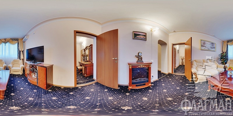 - 2-местный 3-комнатный апартамент (макс. 2+1 чел., 71,8 кв. м, Wi-Fi, телевизор, спутниковое телевидение, кондиционер, ванна, туалет, джакузи, фен, халаты, тапочки, холодильник, туалетные принадлежности, набор посуды, мини-бар, телефон, камин, мягкая мебель, 2-спальная кровать, еврораскладушка).