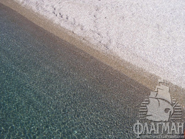 - собственный, мелкогалечный, в 700 м от санатория.