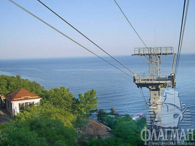 Доставка отдыхающих на мелкогалечный лечебный пляж осуществляется собственной канатной дорогой в течение 3-4-х мин.