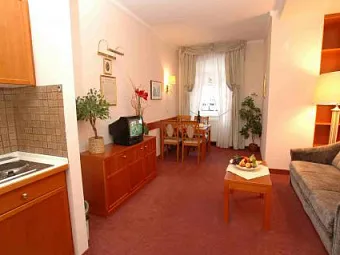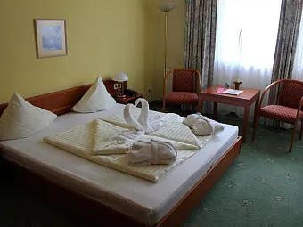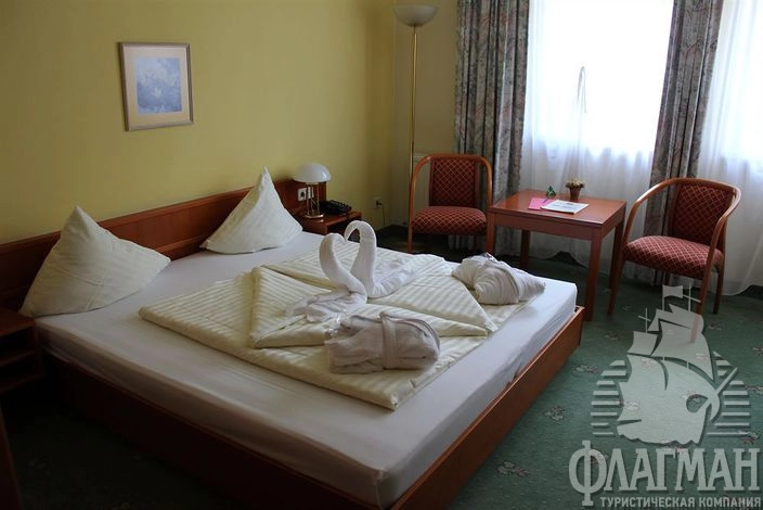 - 2 Raum apartment (в главном здании и в корпусе Residenz, макс. 4 чел., 40 м2, спальня, гостиная с обеденным уголком, раскладной диван на 2 чел., небольшая кухня, отдельный туалет, ванна)