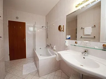 - 3 Raum suite (в главном здании и в корпусе Residenz, на 3–6 чел., 70 м2, 2 спальные комнаты, гостиная с раскладным диваном на 2 чел., обеденный уголок и небольшая кухня)