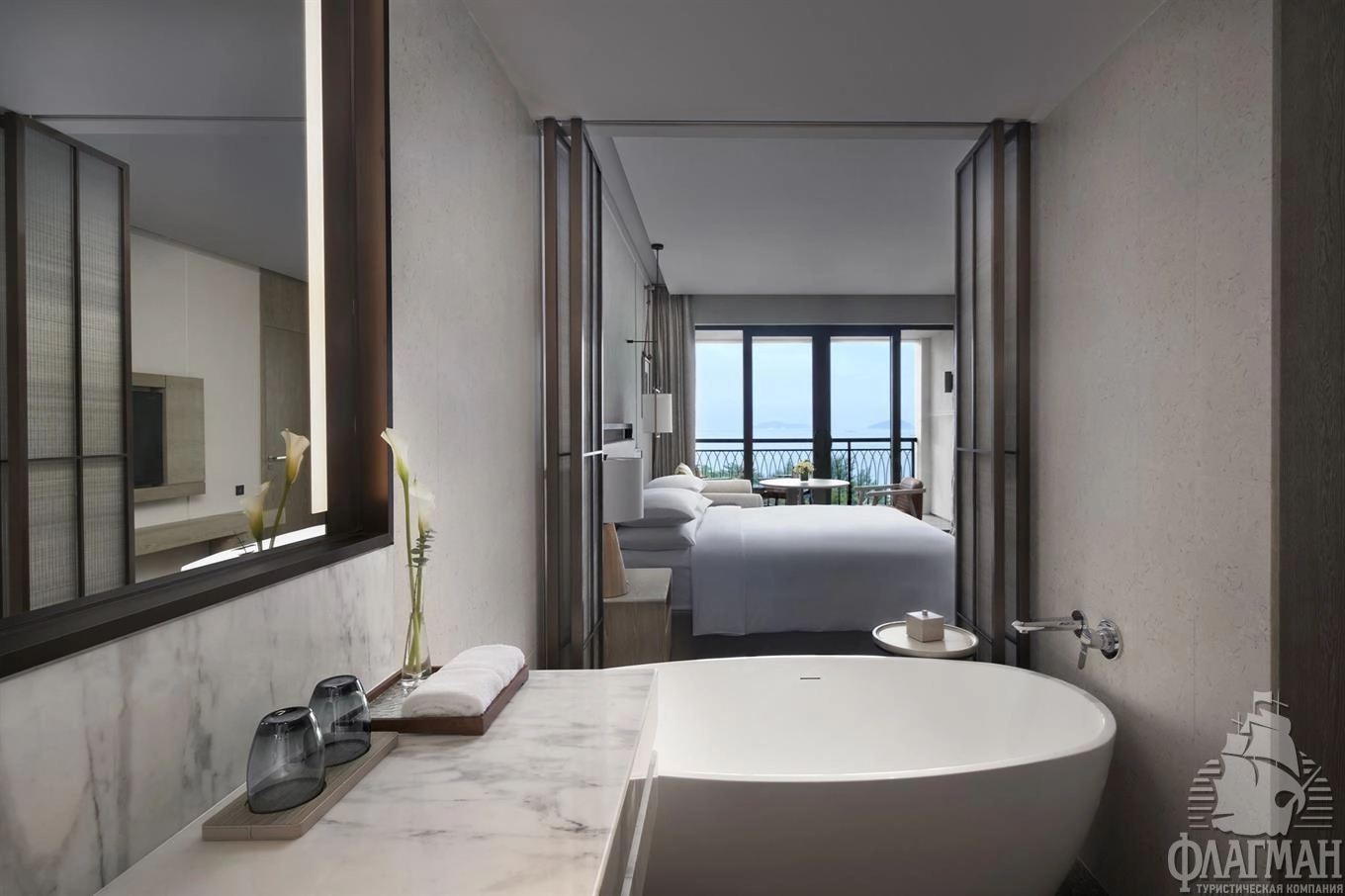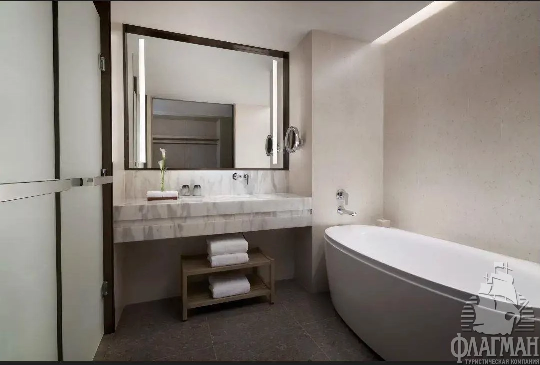 - Deluxe ocean view suite (на 4-8 этажах, 92 кв. м, спальня, кровать King-size, гостиная, межкомнатная дверь, ванная комната, балкон, вид на море);