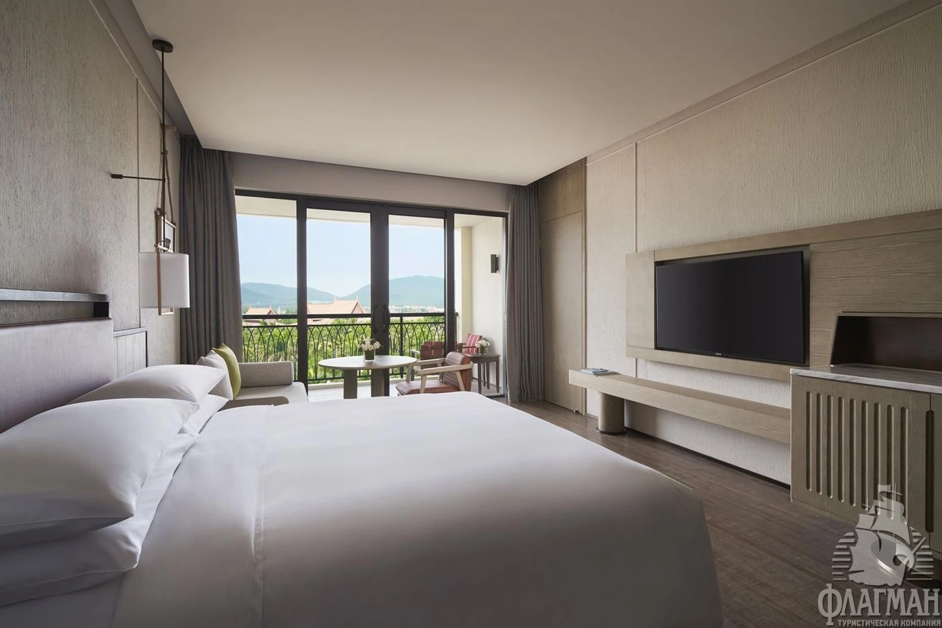 - Scenic view room king (на 1-5 этажах, 46 кв. м, спальня, кровать King-size, ванная комната, балкон, вид на сад или горы);