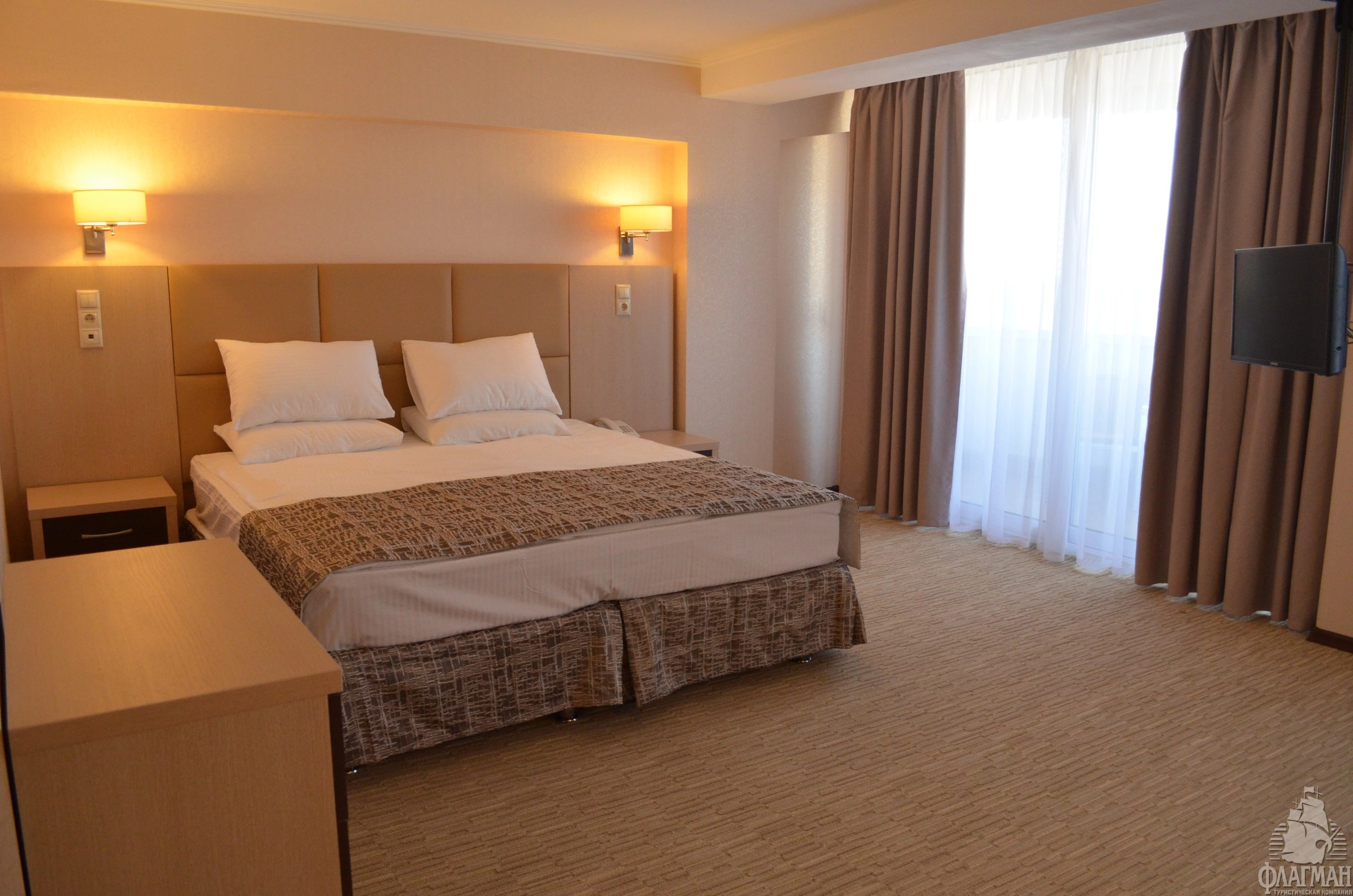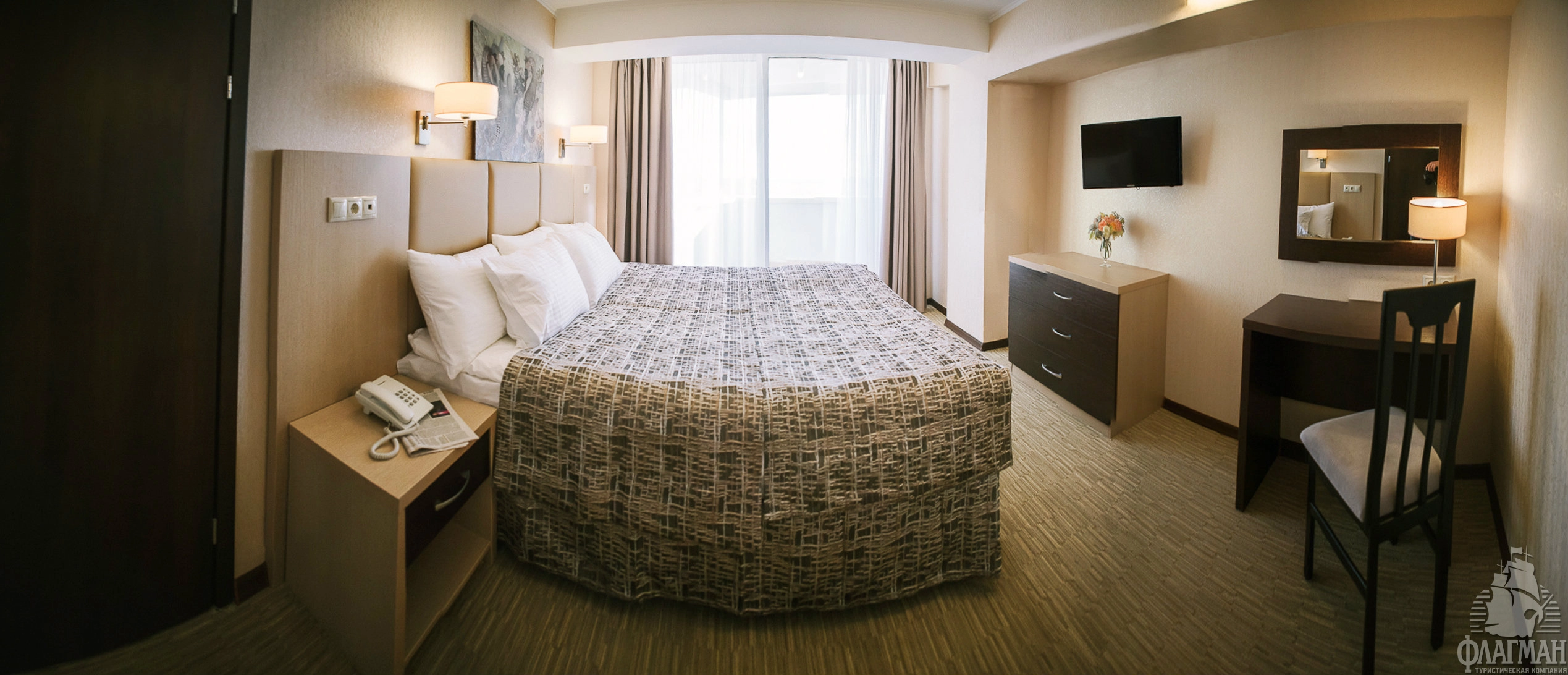 - Double, Double/Twin rooms - удобный однокомнатный номер в пастельных (светлых) тонах, площадью 17 м2. Номер укомплектован широкой двуспальной кроватью, двумя прикроватными тумбами, шкафом для одежды, рабочей зоной состоящей из письменного стола и стула. Каждый номер оснащен настенной плазменной панелью, с широким выбором спутниковых тв каналов, автономной системой кондиционирования, электронным сейфом,светонепроницаемыми шторами системы “blackout”. Производится ежедневная уборка комнат. Все номера Sea Galaxy Congress Hotel & Spa оснащены междугородней и международной телефонной связью, спутниковым телевидением. Каждый номер оснащен санузлом с душевой кабиной c противоскользящим покрытием. Просторный балкон с потрясающим видом на морской пейзаж оснащен комплектом мебели для террасы, в комплектацию входит столик и два стула.