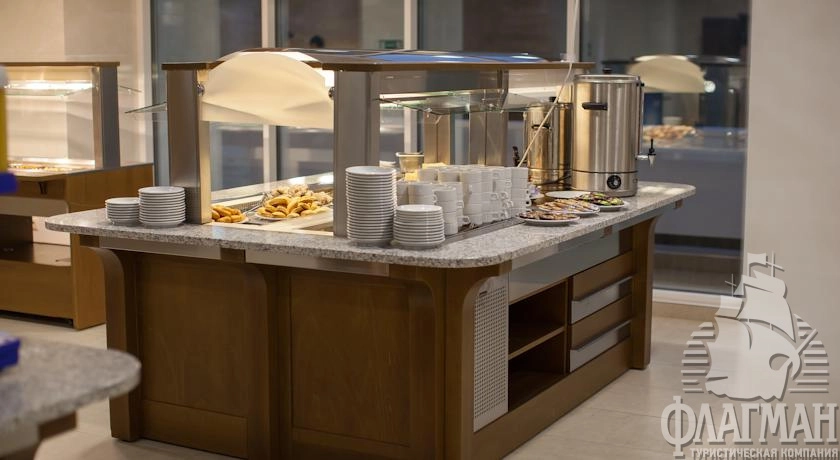 - Зал шведской линии : Шведский стол предоставляет широкий ассортимент вкусных и сбалансированных блюд. В меню присутствует свежая выпечка, изготовленная умелыми кондитерами и вкусные десерты. К услугам гостей завтраки, обеды и ужины.