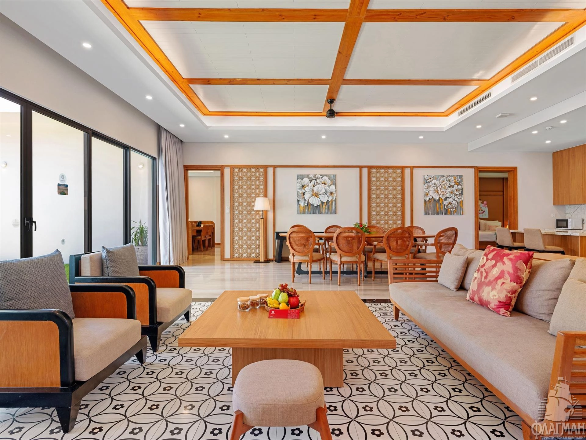 У пляжа, 4 спальни: 2 двуспальные кровати king-size и 4 односпальные кровати, просторная гостиная комната с диванами, обеденным столом и мини-кухней, 4 ванные комнаты с душем, терраса, персональный бассейн, вид на океан.