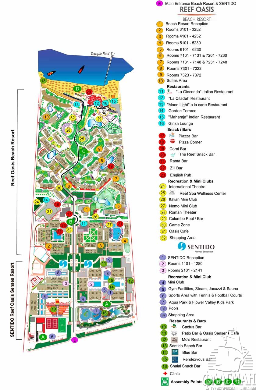 Сентидо Риф Оазис Сенсес Резорт 5* позиционирует себя как самый люксовый отель среди всех шармских "Оазисов". Цены на отдых здесь будут подороже, чем в одноимённых отелях. В отеле безупречные интерьеры являющие собой смесь арабских традиций с хайтеком, вышколенный персонал (что нечасто встретишь в Египте), хорошая кухня, рестораны, бары, подогреваемый бассейн и конечно безумно красивый риф. Находится на одной территории с другой популярной "пятёркой" в Шарме - Reef Oasis Beach. Гости отдыхающие в Sentido могут пользоваться всеми услугами соседней гостиницы. Собственный песчаный пляж в 700 м от отеля, рядом кораллы, понтон, имеется песчаный вход в море. Между отелем и пляжем проходит променад. Имеется сервис до пляжа.
