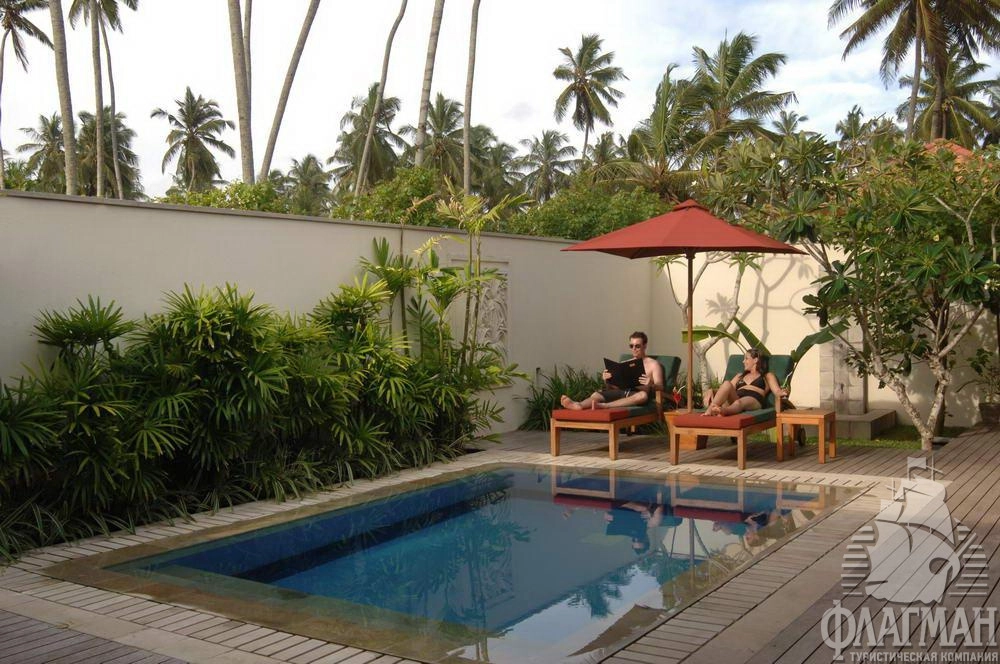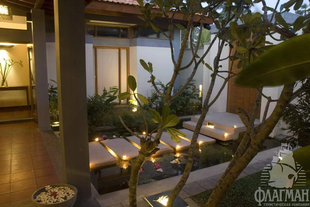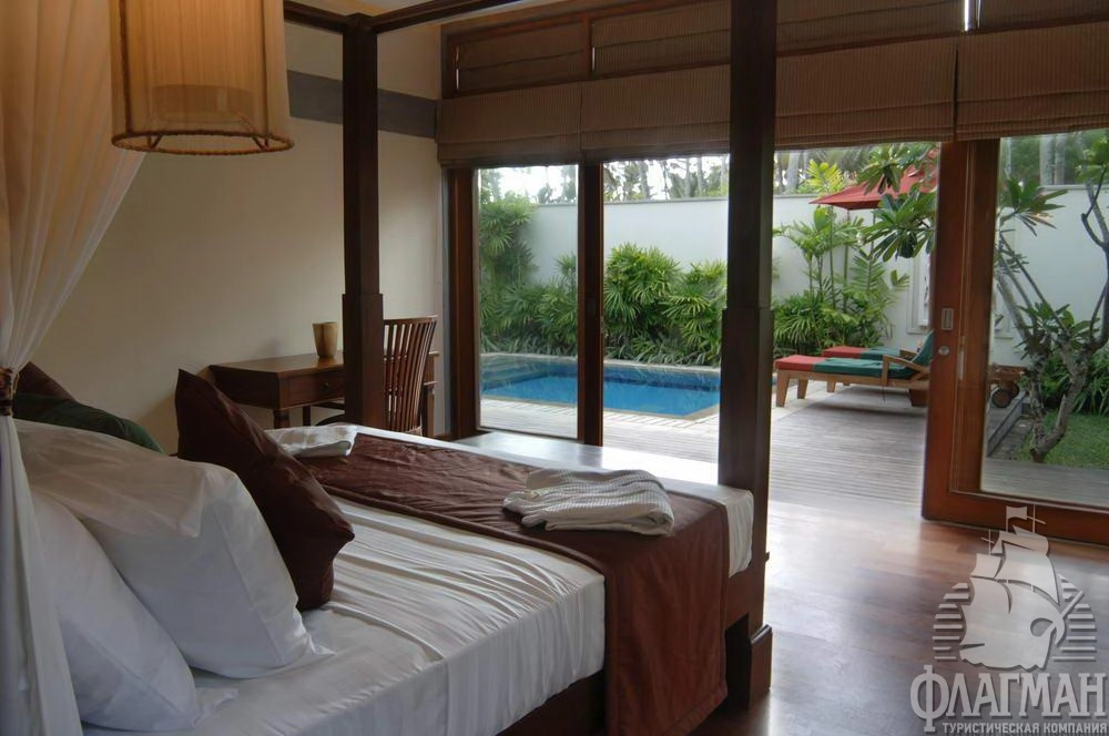 - 1 Garden Pavillion 1 Bedroom (137 м2, макс. 2 чел). Отдельно стоящий одноэтажный павильон с внутренним двориком, расположен в саду. Спальня, гостиная и столовая, ванная комната, гардеробная, кухня, комната для батлера, бассейн во дворе.