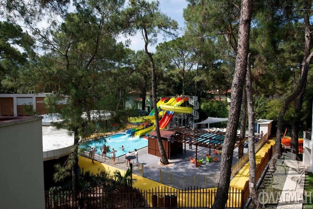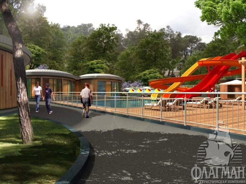 - 4 открытых бассейна: бассейн для малышей – глубина 35 см, бассейн с горками – глубина 120 см, бассейн для активного отдыха – глубина 60 см, детский бассейн – глубина 50 см