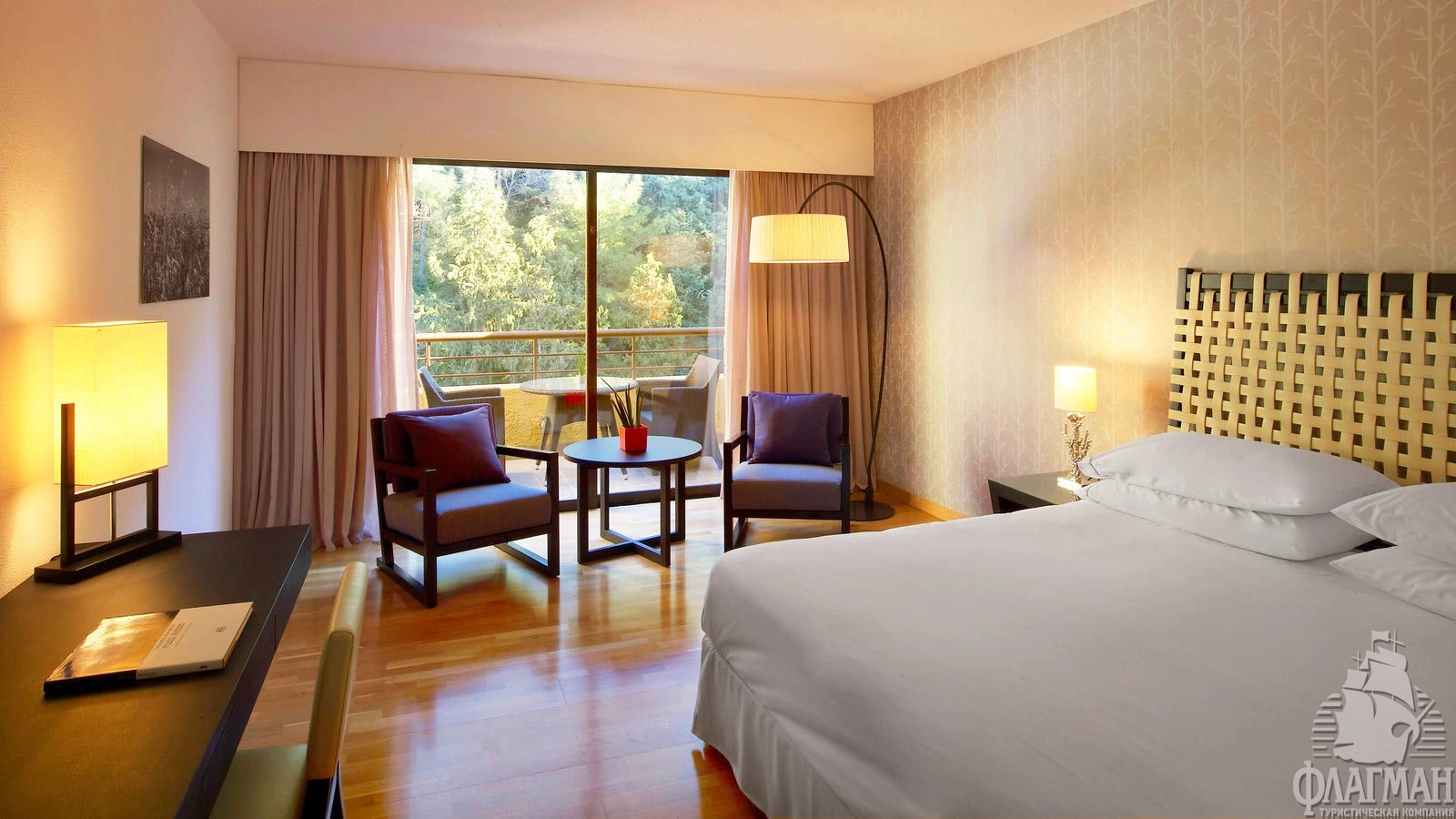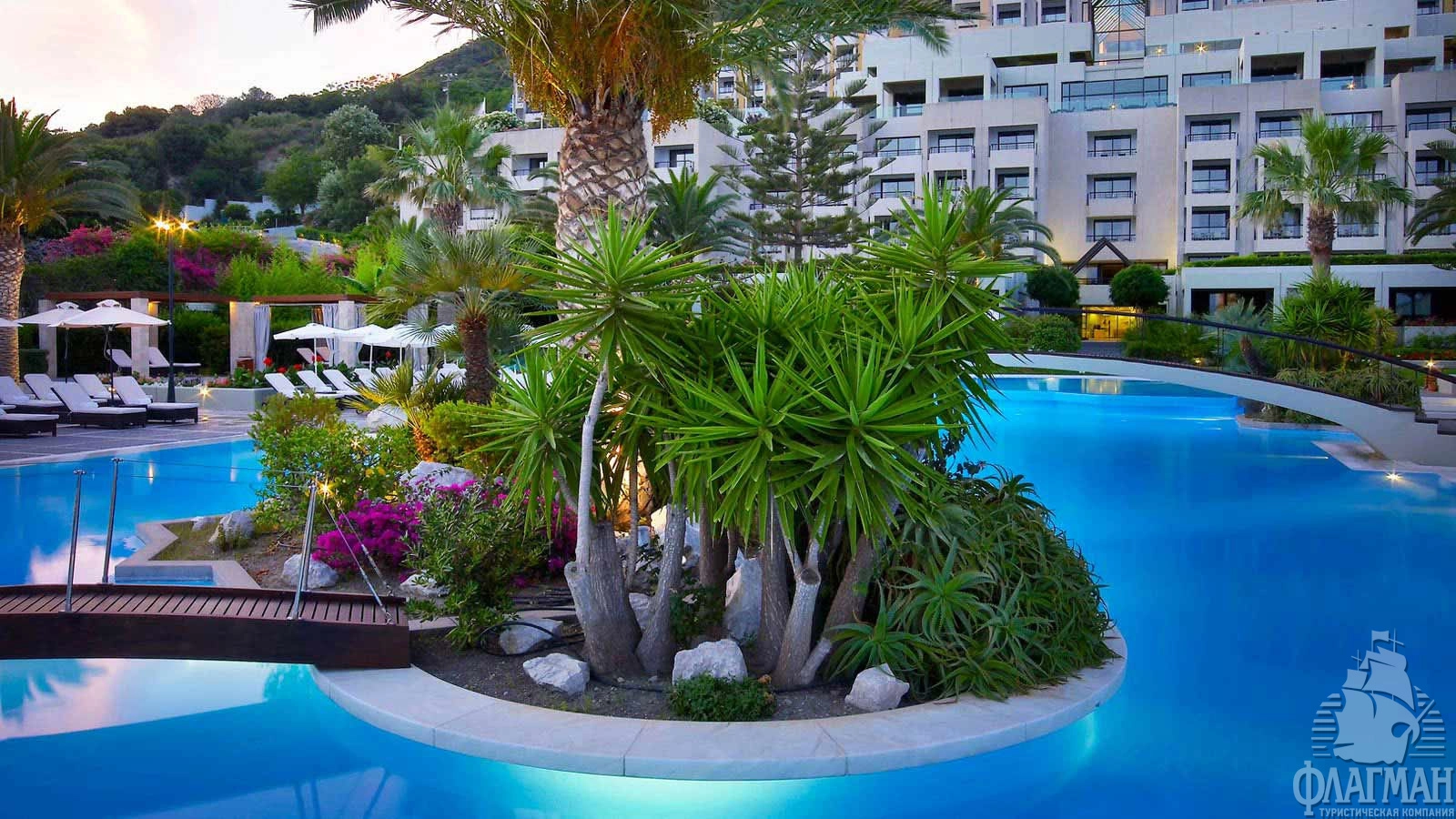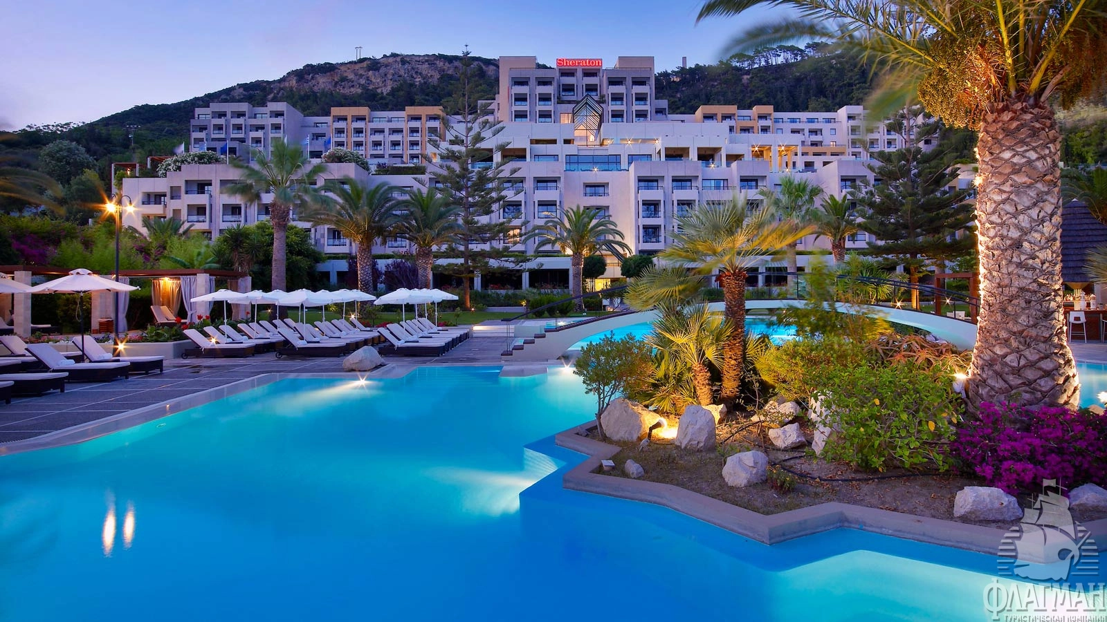 Шератон Родос Резорт 5* находится у подножия гор, недалеко от центра города Родос. К услугам гостей: уюные номера, хороший сервис, развитая инфраструктура, спокойная анимация и живая музыка вечером. На территории компактно расположились: основной ресторан, 3 ресторана a la carte (итальянский, средиземноморский, греческий), 2 бара, магазин, крытый бассейн с пресной водой, 3 открытых бассейна с пресной водой, конференц-залы, ТВ-зал, тренажерный зал, теннисный корт, детская площадка под навесом и детский клуб. Рекомендуем для романтического и семейного отдыха.