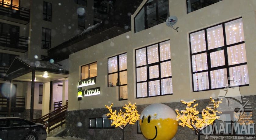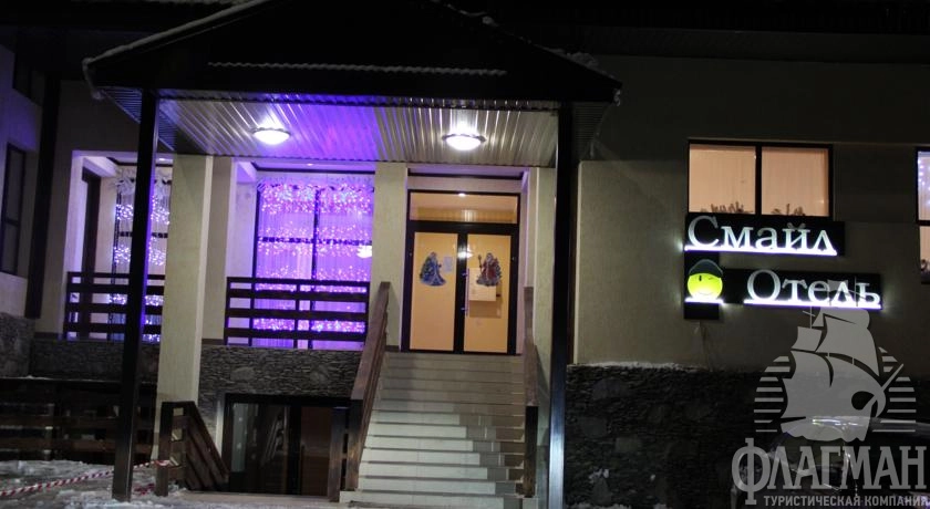 Отель Смайл 3* находится в Кабардино-Балкарской республике на поляне Чегет, на высоте 2050 м над уровнем моря, на границе природного заповедника. Расстояние до подъемника - 500м. К услугам гостей: ресторан, бесплатный Wi-Fi, парковка, услуга по хранению спортивного инвентаря в специальном хранилище, бильярд и настольный теннис. Рекомендуем для активного отдыха.