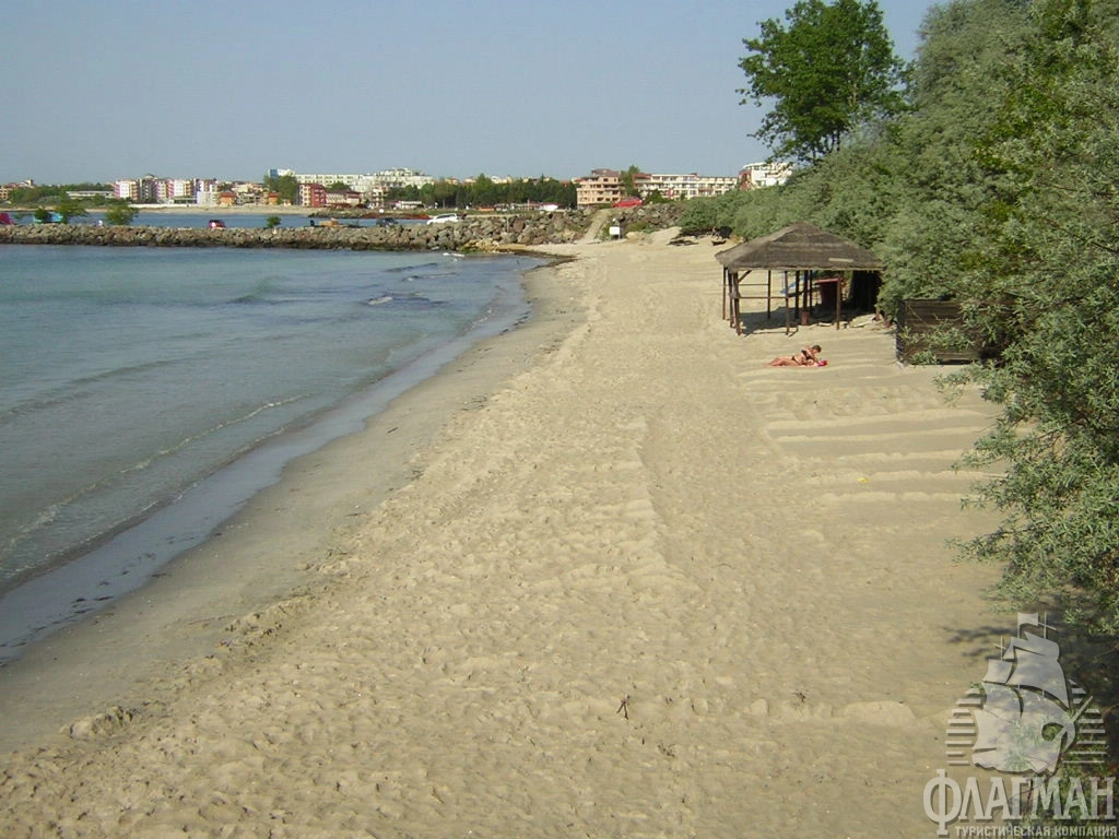 в курортном городе Несебр, в 35 км от аэропорта города Бургас, в 2 км от центра курорта, в 50 м от пляжа.