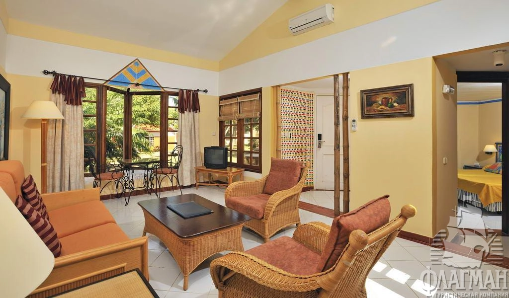 - 85 bungalow luxe room (расположены в привилегированной части отеля, окружены тропическим садом, идеальны для размещения семей, спальня с дверью, гостиная, 47 м2, макс. 4 чел.),