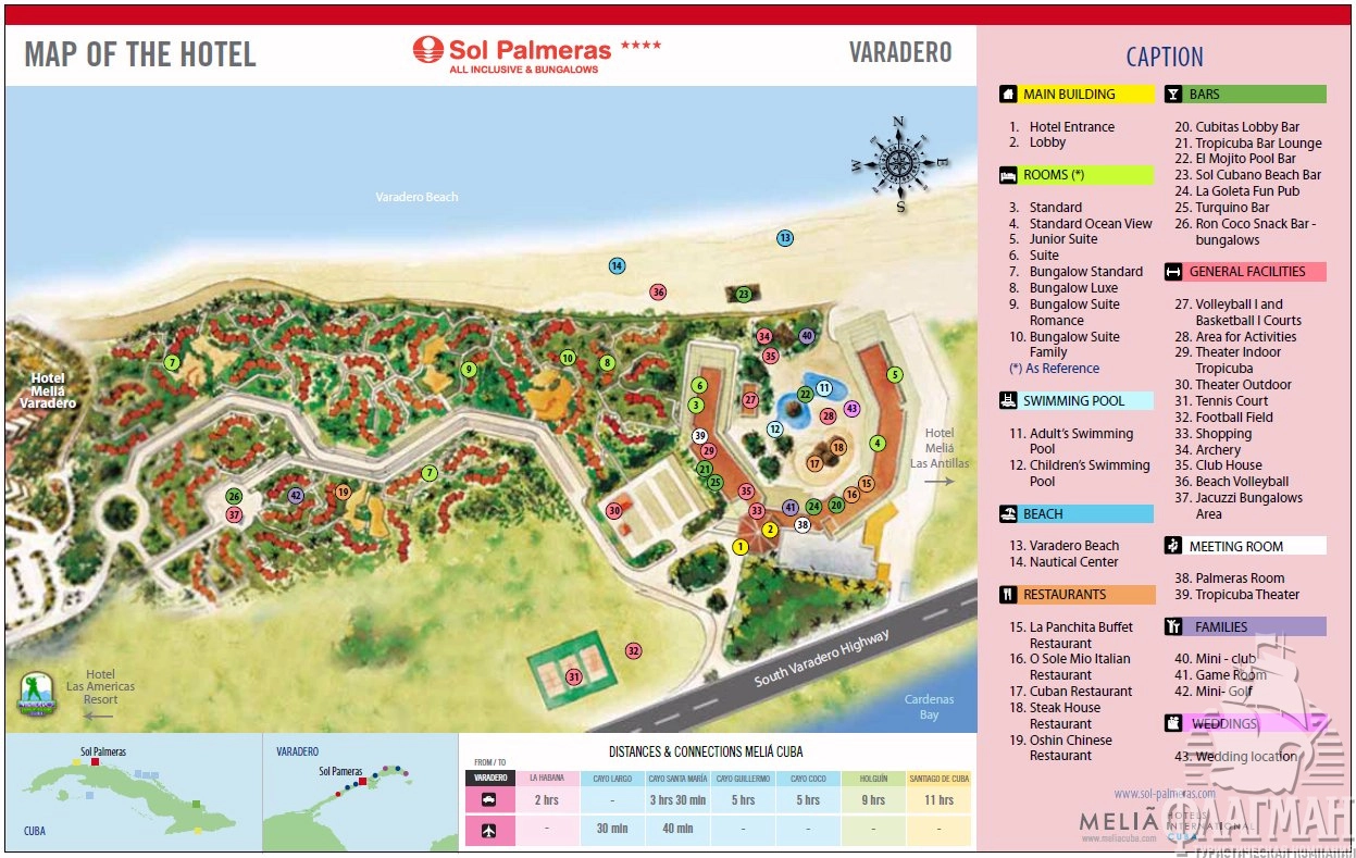 расположен в 35 км от аэропорта Варадеро, в 8 км от центра города Варадеро, в 136 км от Гаваны.