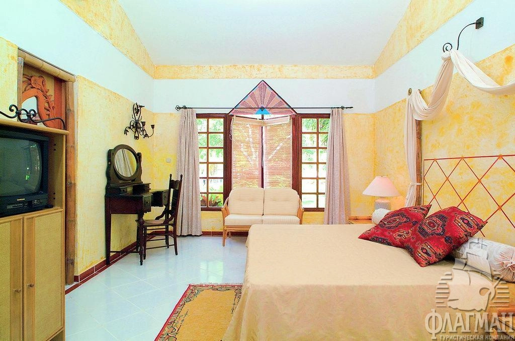 - 62 standard bungalow (элегантно декорированы и расположены в тропическом саду отеля, спальня с дверью, гостиная, мини-кухня, 47 м2, макс. 4 чел.),