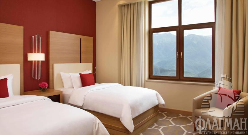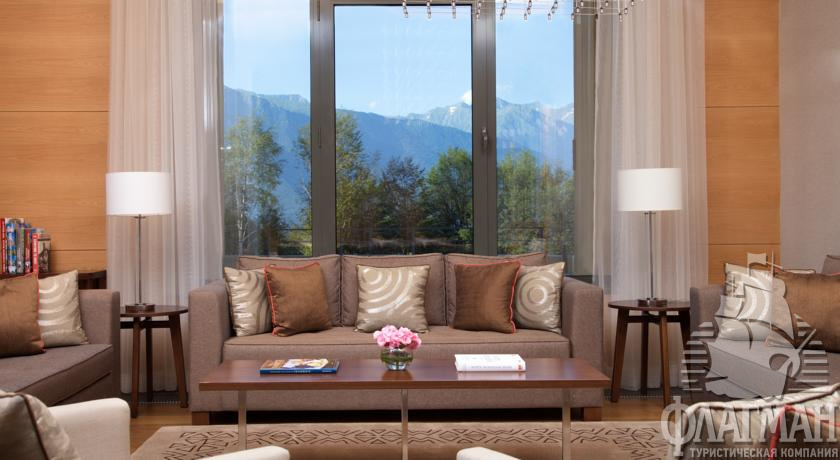 Здание гостиницы находится на высоте 960 метров над уровнем моря. Предлагается размещение в номерах с живописными панорамными видами Кавказских гор и с прямым доступом к лыжным склонам. Дизайн интерьера сочетает элегантный и утонченный стиль, комфорт и последние технологии.