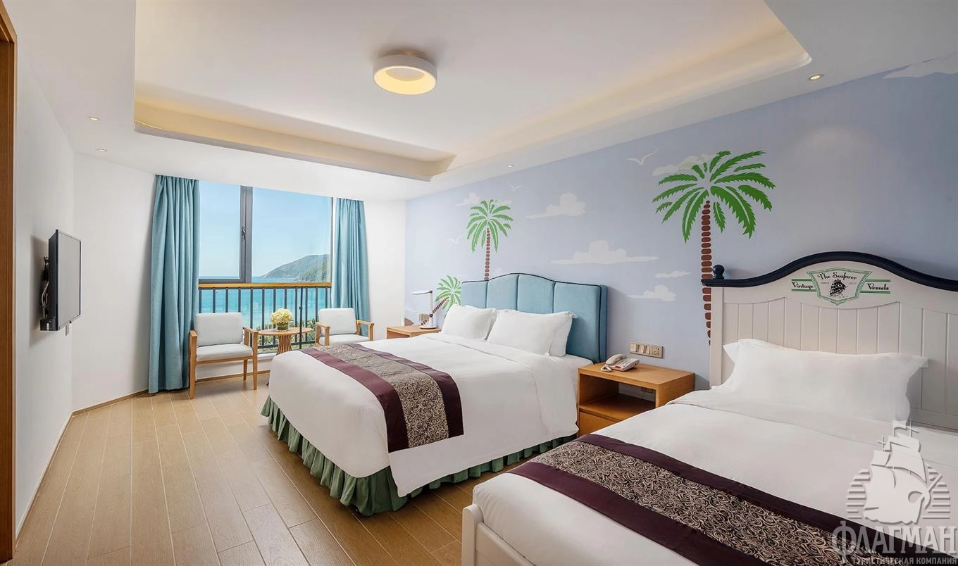 Соув Санья 4* - отель в бухте Дадунхай, практически на берегу моря, есть свои зонтики и лежаки на пляже. В гостинице разнообразный номерной фонд, есть, стандарты, 2..3 комнатные номера, виллы, есть номера на 1м этаже с собственными двориками. На территории бассейн, водная горка, детская площадка, детский клуб, спа-слалон, тренажёрный зал, магазины. Есть свой центр китайской традиционной медицины. Очень удачно расположен - на территории тихо, но недалеко от магазинов, ресторанов, пляжа. Рекомендуется как для активного, так и для семейного отдыха.