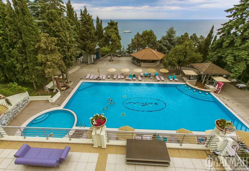 Отель расположен в 1 км от аквапарка «Миндальная роща», в 40 км от дельфинария в г. Ялта.