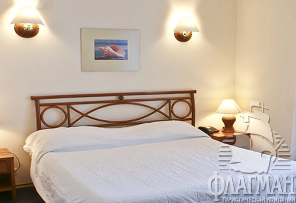 - 2-местный номер комфорт (макс. 2+1 чел., 27 кв. м, Wi-Fi, ЖК / LCD телевизор, кондиционер, душ, туалет, фен, балкон, электрочайник, мини-бар, сейф, телефон, 1-спальные/ 2-спальная кровать). Доп. место - еврораскладушка.