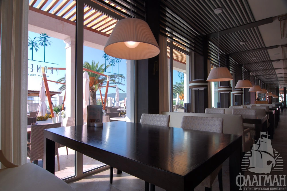 - Ресторан изысканной кухни WINDOW OF MONTENEGRO на 80 мест, расположенный на 10-м этаже, с панорамным видом из окон (a la carte);