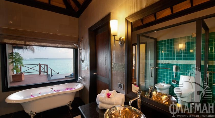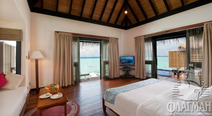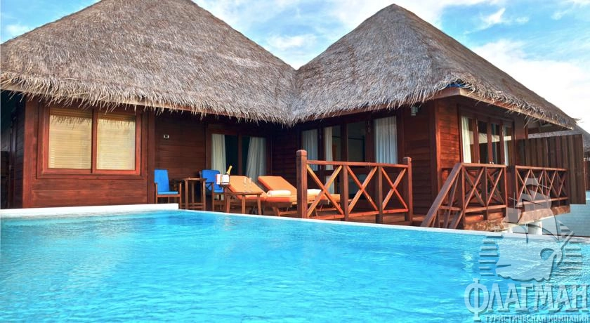 1 Grand Reef Suite (220 м², макс. 4 чел.). Надводная вилла класса люкс, расположенная в северной части острова, прекрасно сочетает в себе современный дизайн и традиционную мальдивскую архитектуру. 2 спальни, каждая с собственной ванной комнатой, гостиная с обеденной зоной и панорамным видом на океан, кухонный уголок. Двухуровневая терраса с бассейном, шезлонгами и прямым спуском в воду.