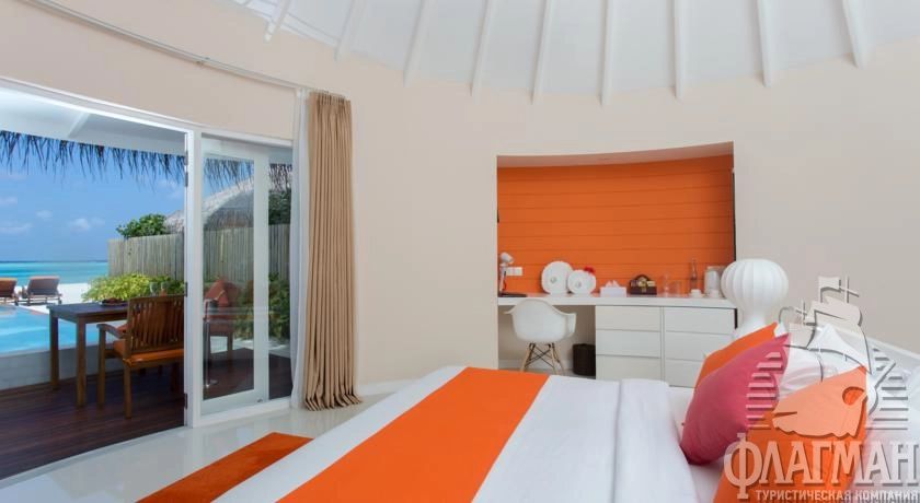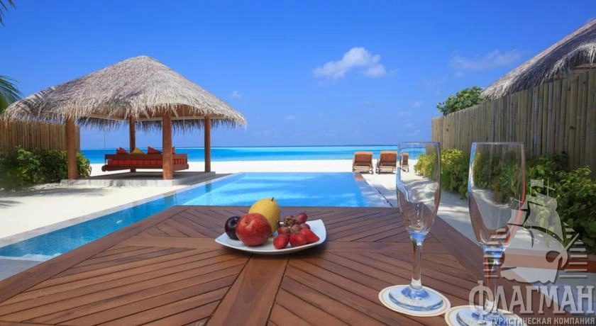 5 Deluxe Beach Villa with Pool (108 м², макс. 3 или 2+2 чел.). Виллы аналогичны номерам Beach Villa, но более просторные и дополнительно имеют мальдивские качели, а также частный бассейн из лавового камня (30 м2).