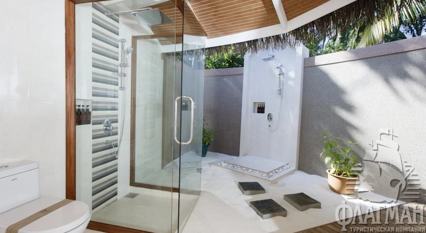 10 Jacuzzi Deluxe Beach Villa (76 м², макс. 3 или 2+2 чел.). Виллы аналогичны номерам Beach Villa, но дополнительно имеют мальдивские качели на террасе и джакузи (iSPA-ванна) в ванной комнате.