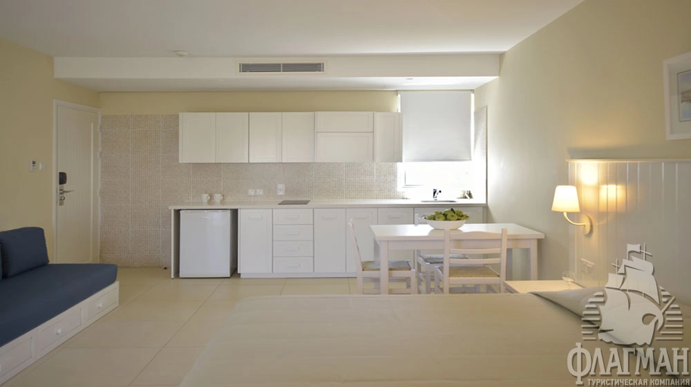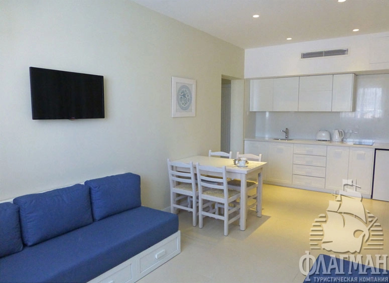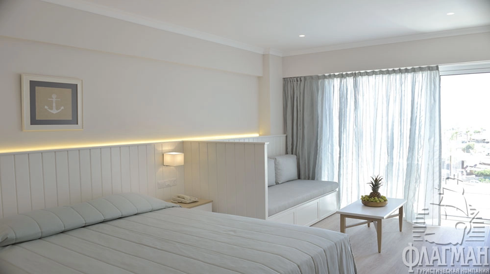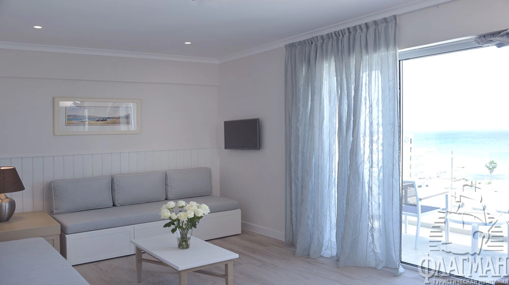 One Bedroom Suite (42 м2): большая гостиная, ванная комната, 2 ТВ со спутниковыми каналами, балкон с видом на море; максимальное размещение 4 взр.