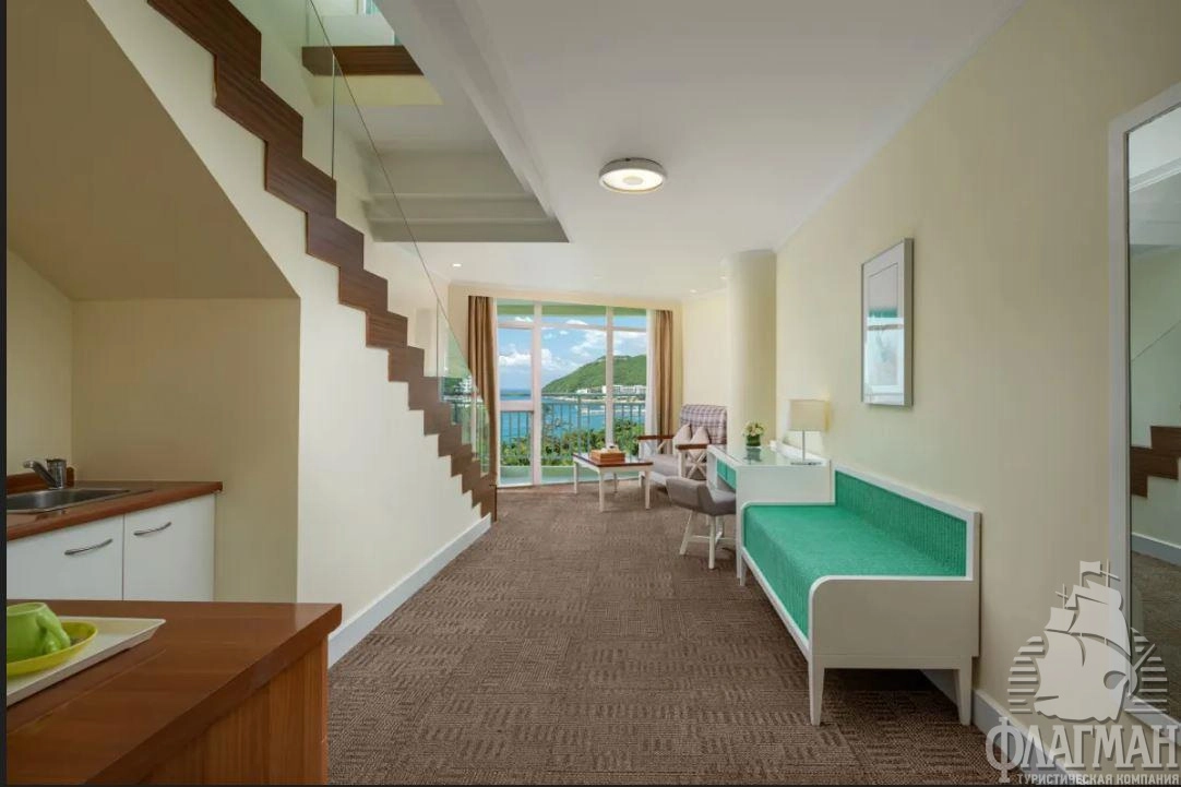 - Deluxe duplex ocean view suite (на 8 и 10 этажах, 169 кв. м, 2 спальни, 2 кровати King-size, гостиная, ванная комната, балкон, вид на море);