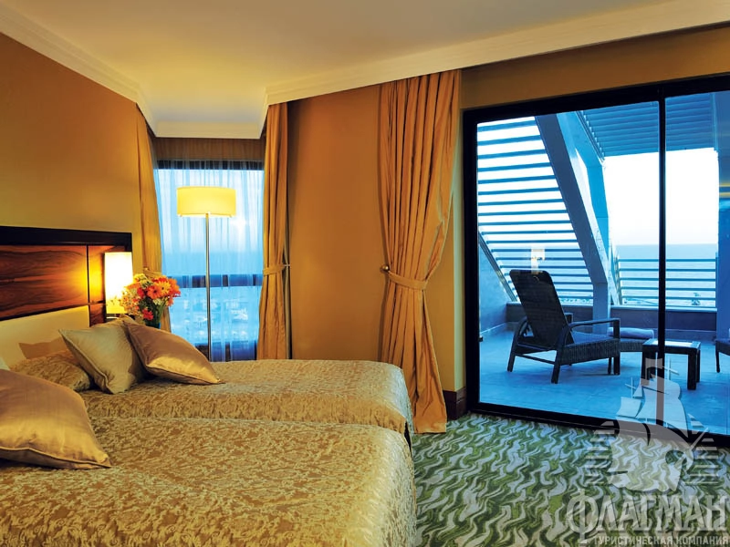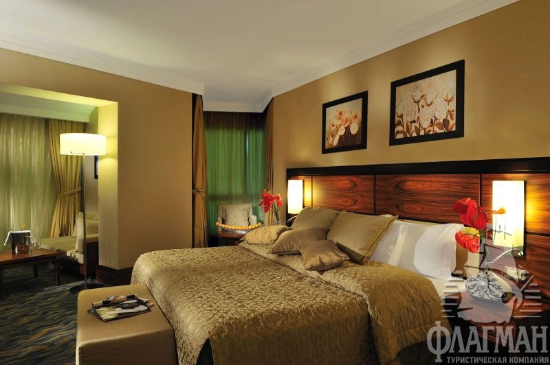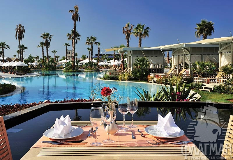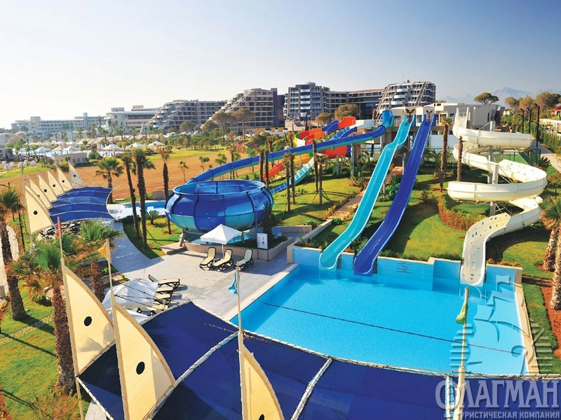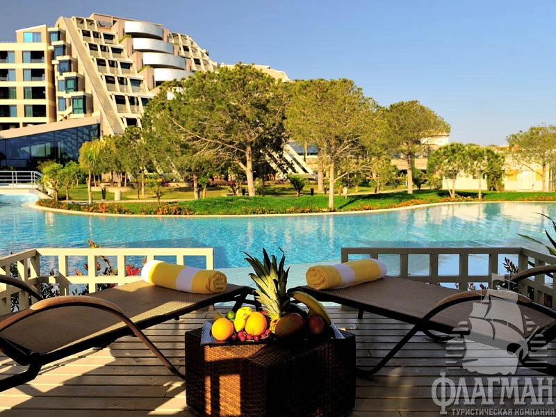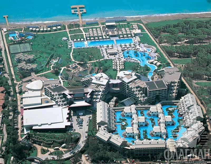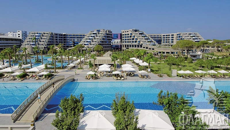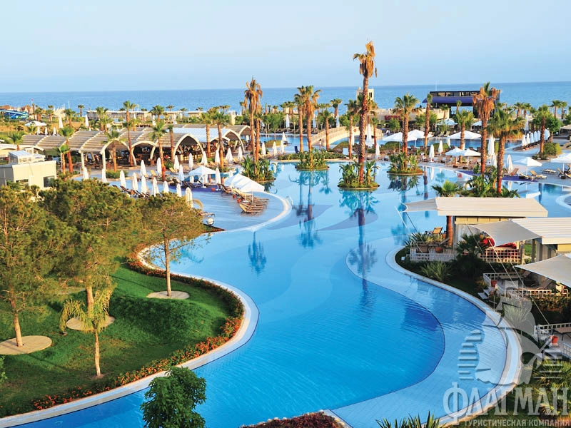 Качественный 5-звездочный курорт с собственным песчано-галечным пляжем в Белеке. Небольшая ухоженная территоия, насыщенная инфраструктура. Гостям доступны все возможности для высококлассного отдыха..Для взрослых имеются SPA-центр, бассейны, бары и рестораны. Идеален для семей с детьми, для которых работают мини-клуб, бассейн, дискотека. Есть аквапарк с водными горками. Рядом находится парк развлечений Land of Legends.