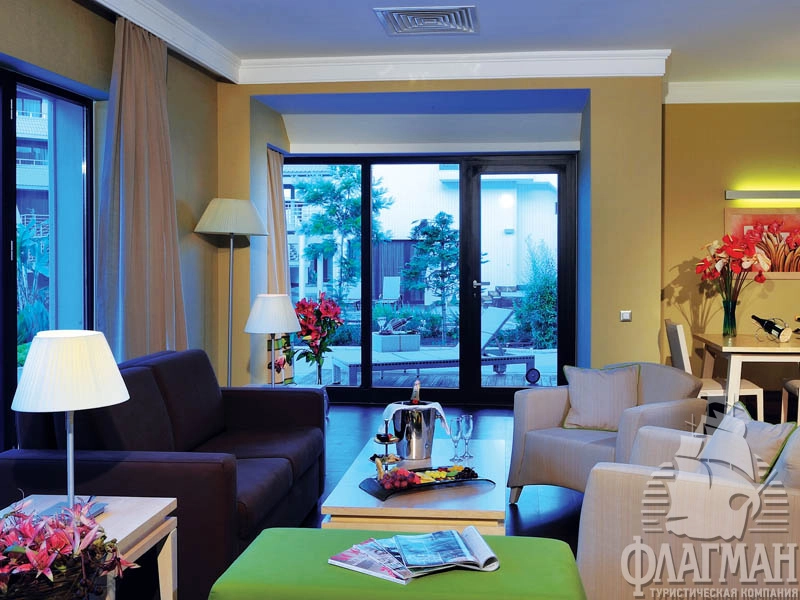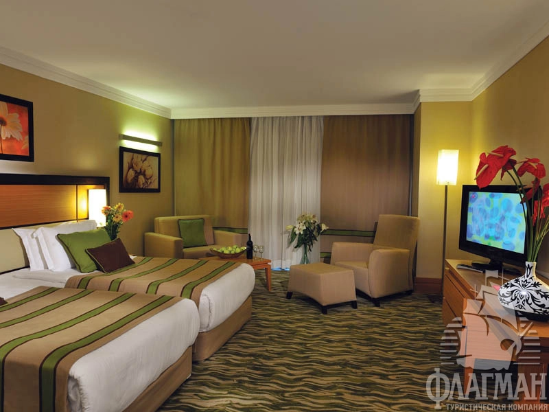 Красивый отель с большой территорией поросшей пихтами, с просторными светлыми номерами, 1я линия. Можно размещаться как основном корпусе, так бунгало и виллах. Для детей есть детская площадка, защищенная от солнца. 2 олимпийских бассейна, два гольф-поля на 18 лунок каждое. Рекомендуем для отдыха с детьми и для любителей гольфа.