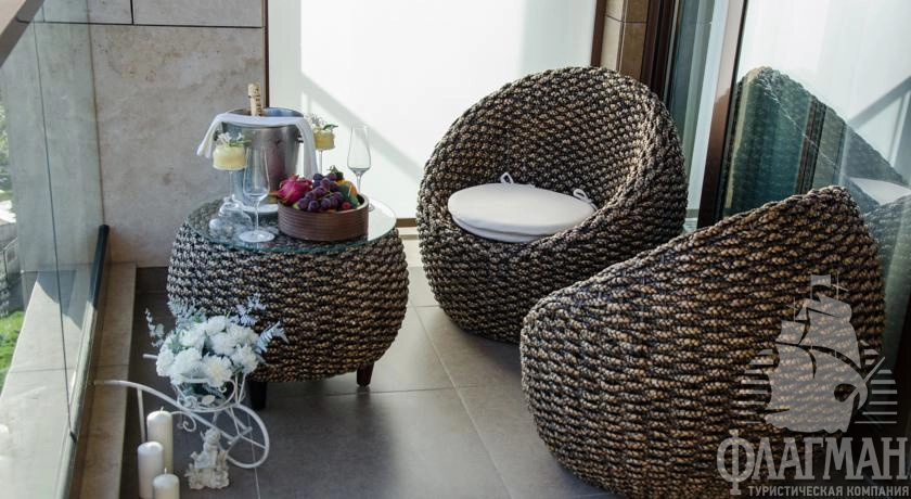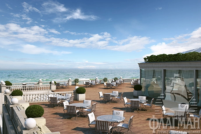 - Номер категории «ЛЮКС» с террасой расположены на последних этажах как западного, так и восточного крыла отеля. Гости будут впечатлены потрясающим видом на Чёрное море, крыши домов и парковую зону. Просторная терраса в каждом из номеров делает их прекрасным местом для отдыха. Вам понравится встречать рассвет и провожать закат уединившись на террасе этого великолепного номера. В люксе, расположенном в восточном крыле, — просторная терраса (166м²) с прекрасно оборудованным местом для отдыха. Любители роскоши и комфорта по-настоящему оценят убранство террасы люкса в западном крыле (68м²) с джакузи.
