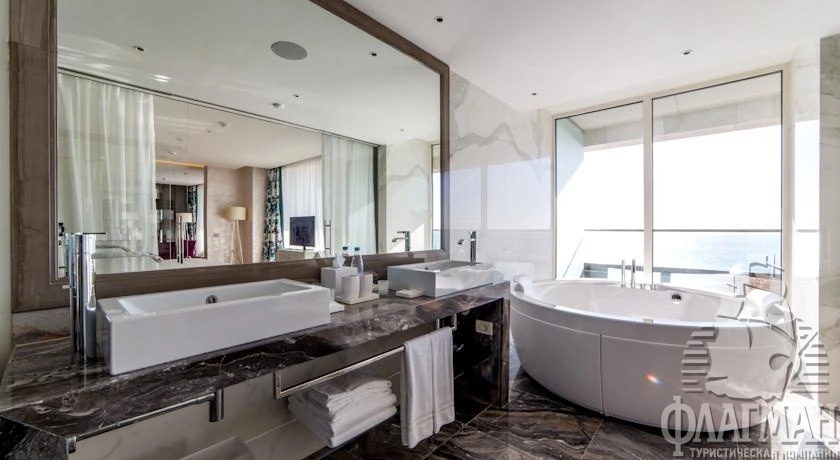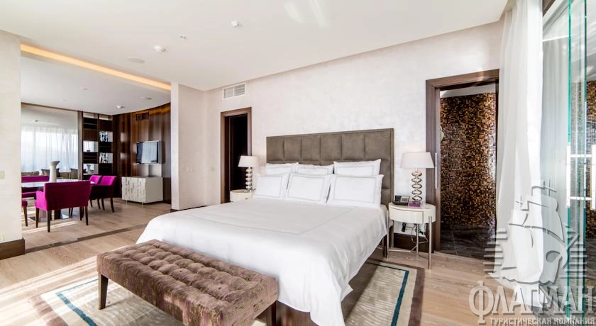 - Двухкомнатные номера категории «ЛЮКС» с видом на море или парк занимают верхние этажи западного и восточного крыльев отеля и состоят из двух просторных комнат: гостиной и спальни. Все номера этого типа оснащены современной ванной комнатой с «тропическим душем». Отлично подходят для отдыха с детьми, романтических уикендов и празднования особых событий в вашей жизни, например, медового месяца. Отдельная рабочая зона, гостиная с двумя креслами и диваном, свободный интернет и кофе-машина отлично подойдут для работы.