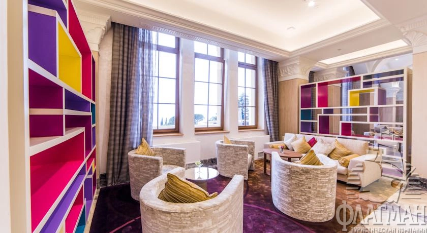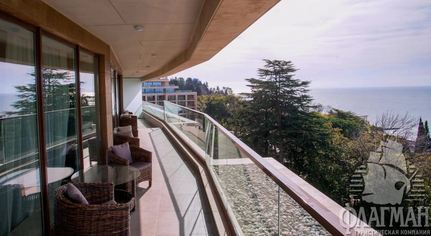 - Двухуровневый номер категории «ГРАНД-ЛЮКС» с видом на море расположен в главном здании отеля. Номер предназначен для уютного и полноценного семейного отдыха, а также для длительного пребывания. Для вашего комфорта в номере обустроена большая гардеробная. Для безмятежного сна рекомендуем воспользоваться расслабляющим массажем в джакузи. С террасы номера открывается чарующий вид на Черное море, бассейн «Камелия» и вечно зеленую территорию парка.
