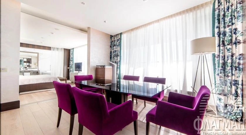 - Президентский номер категории «ЛЮКС» - индивидуальное приемное фойе, просторная гостиная и две спальни — основа эксклюзивного отдыха. Из президентского люкса и террасы открывается панорамный вид на Сочи, Черное море, бассейн и пышный парк нашего отеля. Терраса площадью 170м² делает этот люкс идеальным местом для проведения замечательного дня и сказочного романтического вечера.