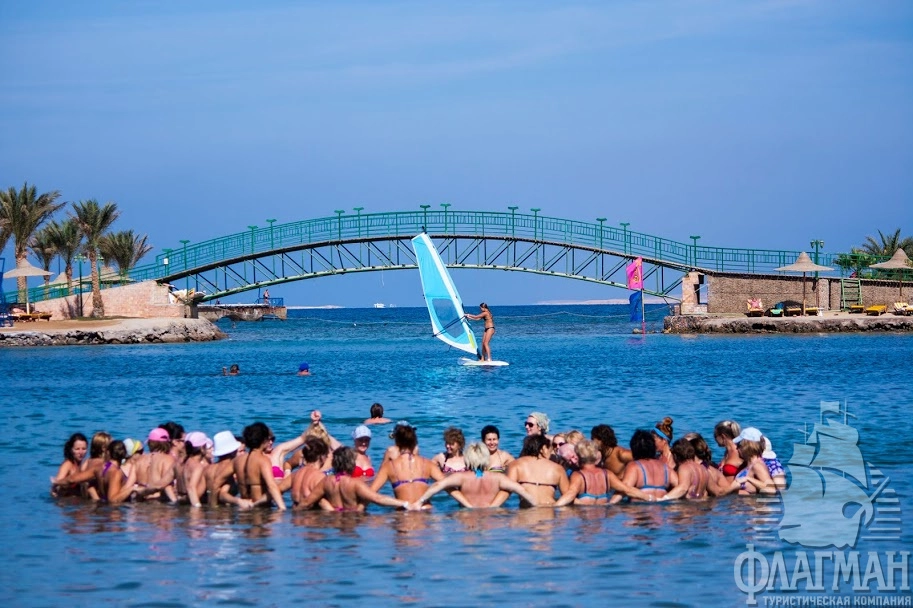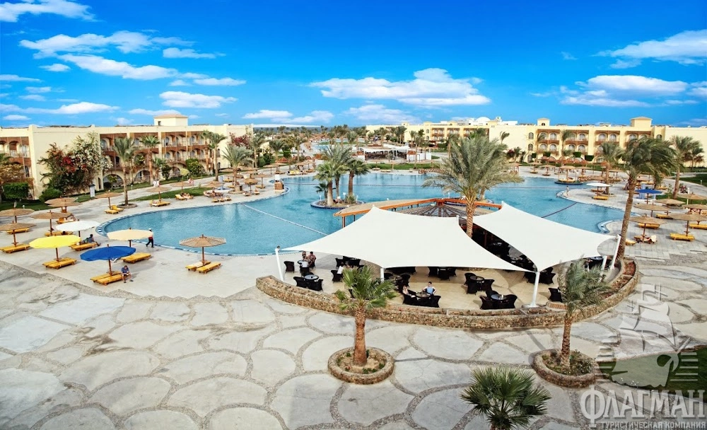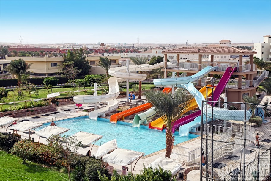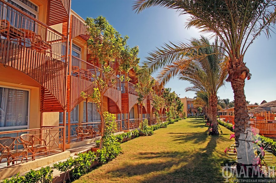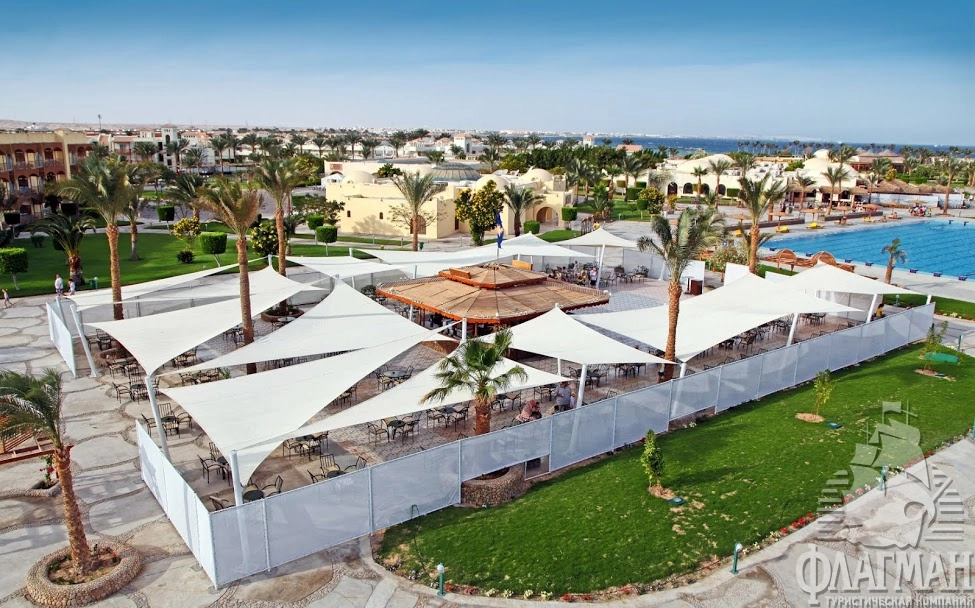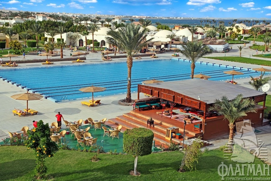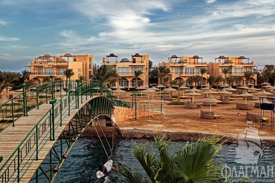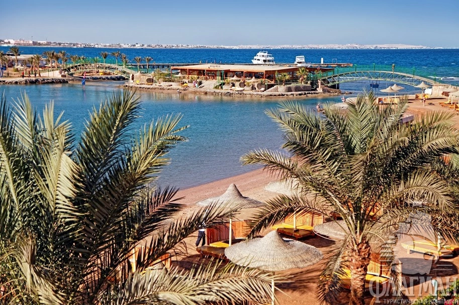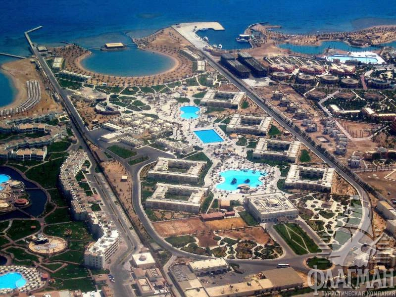 В 11 км от аэропорта Хургады, в 14 км от центра города, на самом берегу моря.