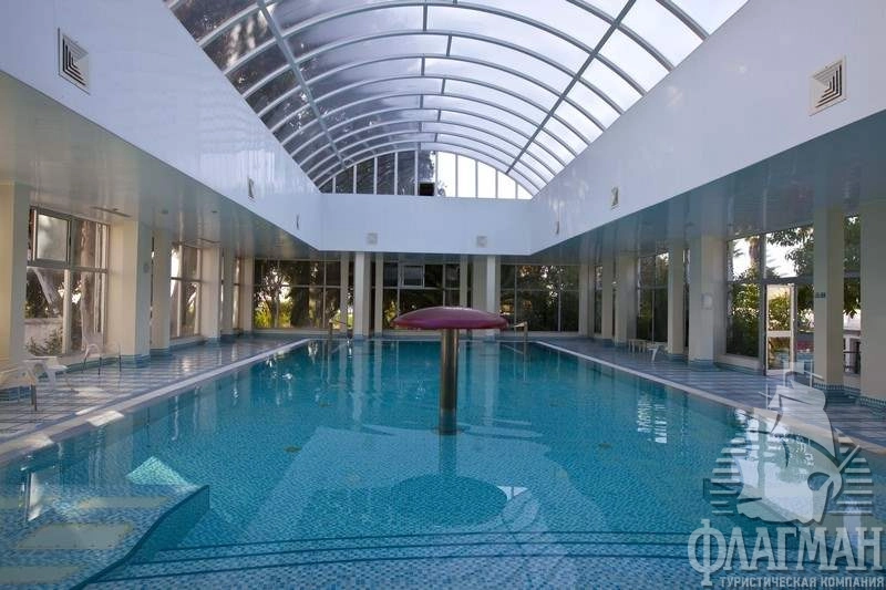 - 3 бассейна (1 крытый с подогревом в зимнее время, 2 открытых)