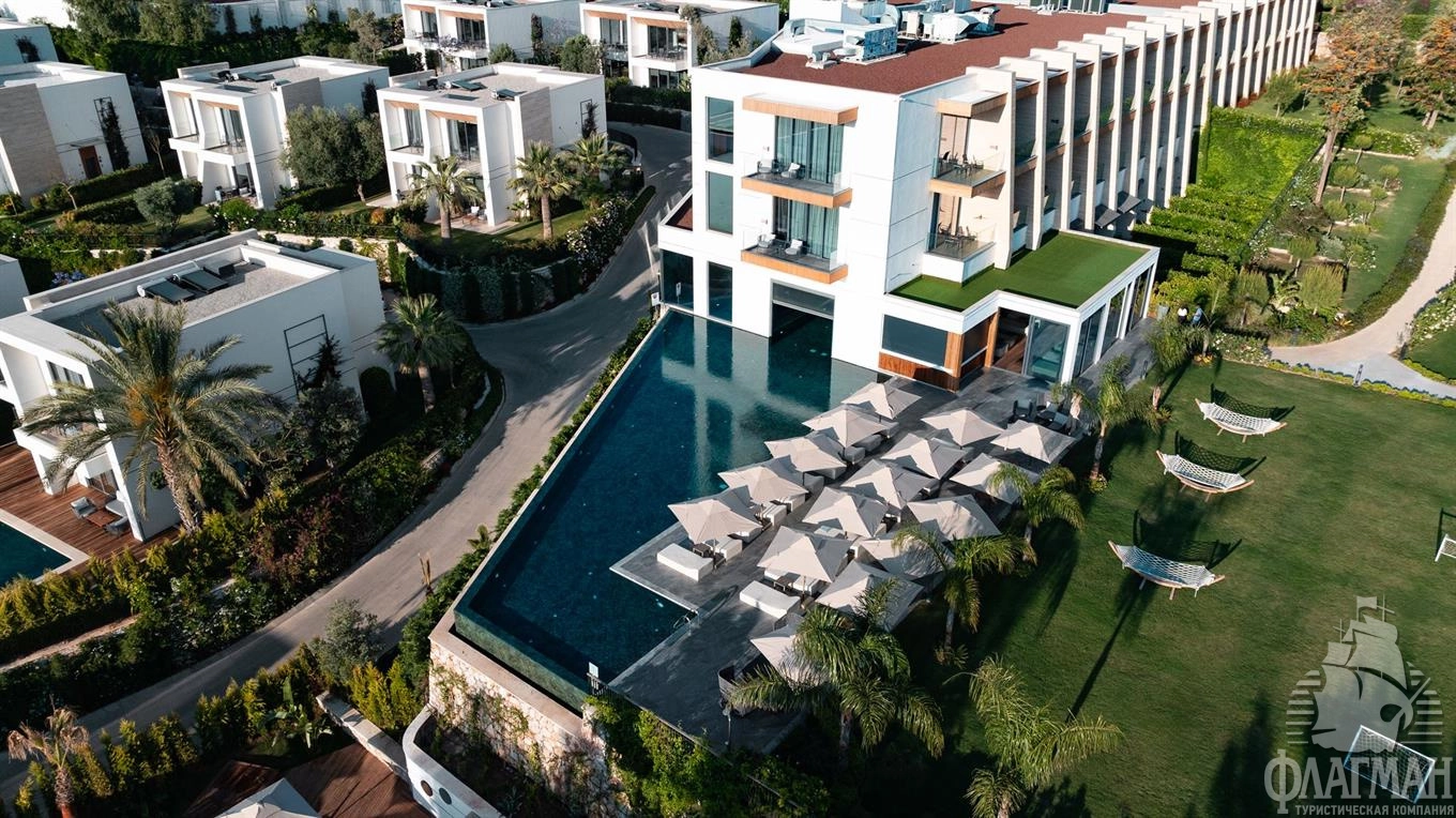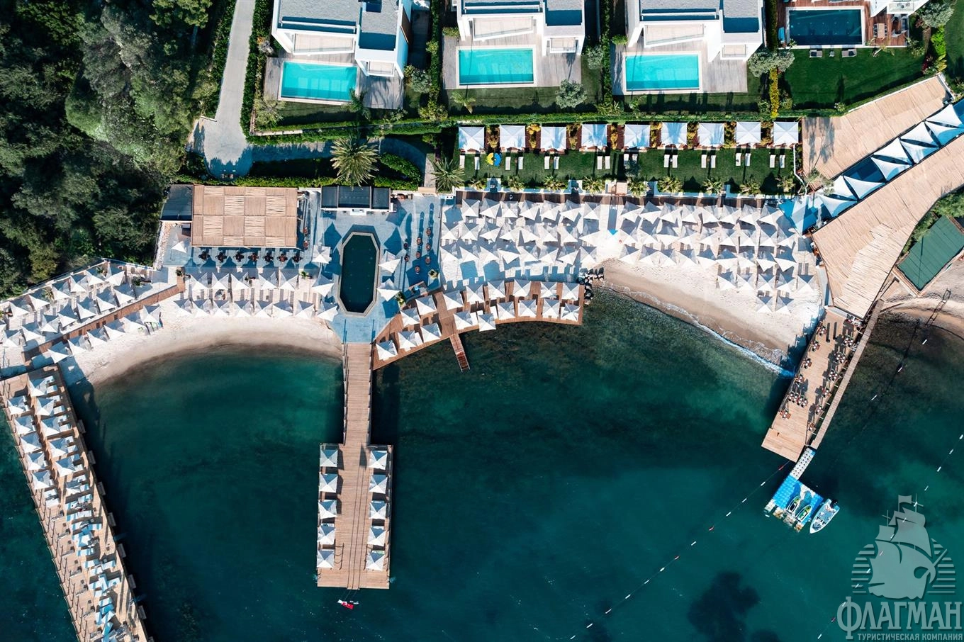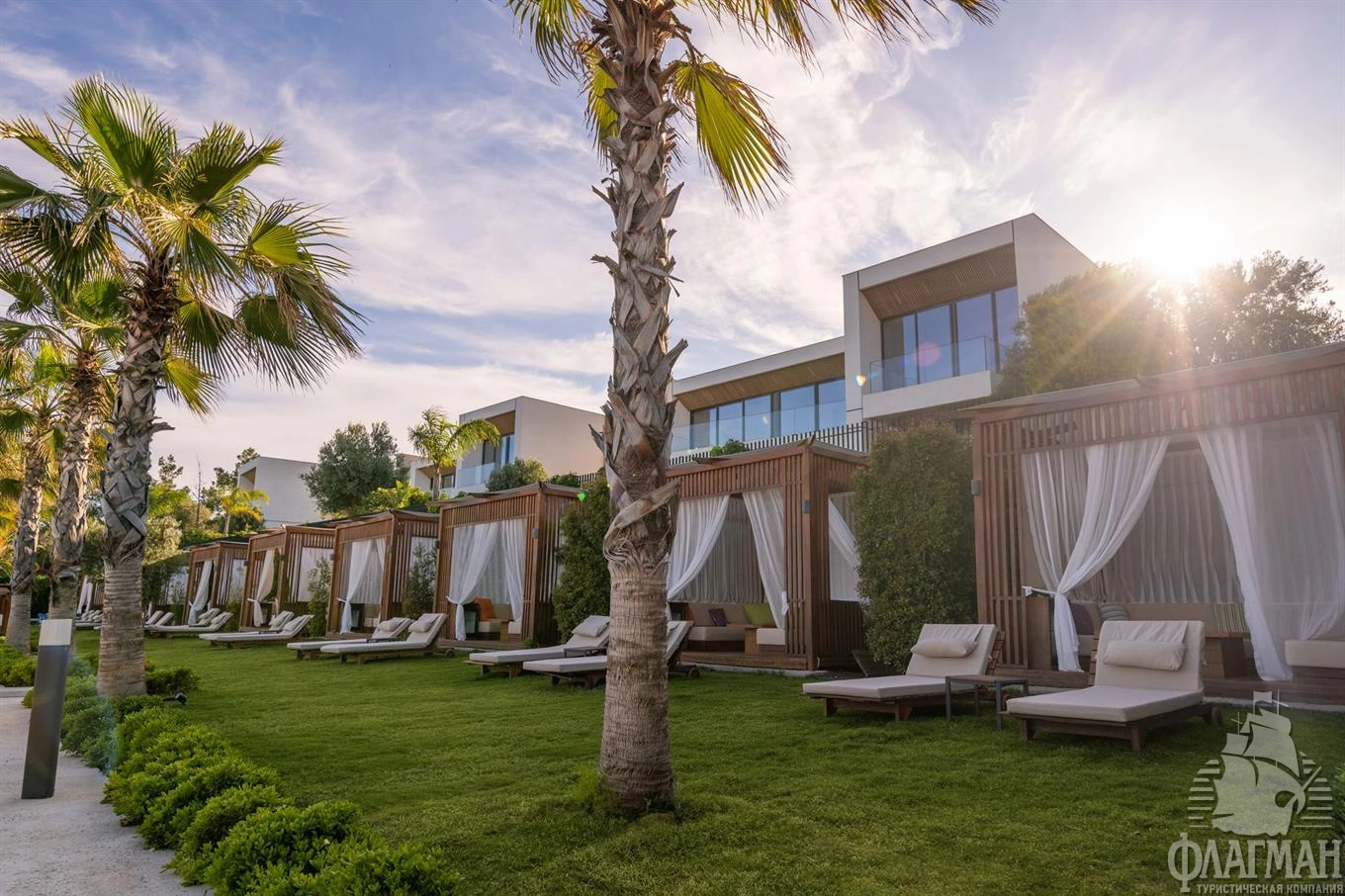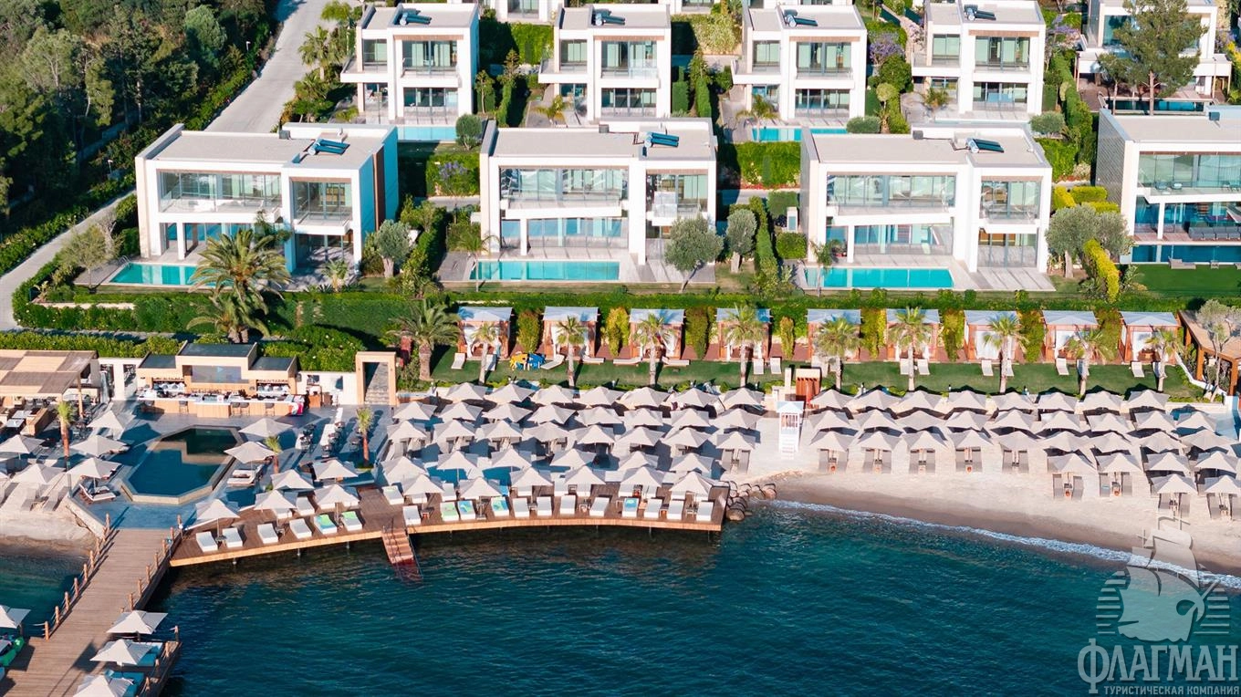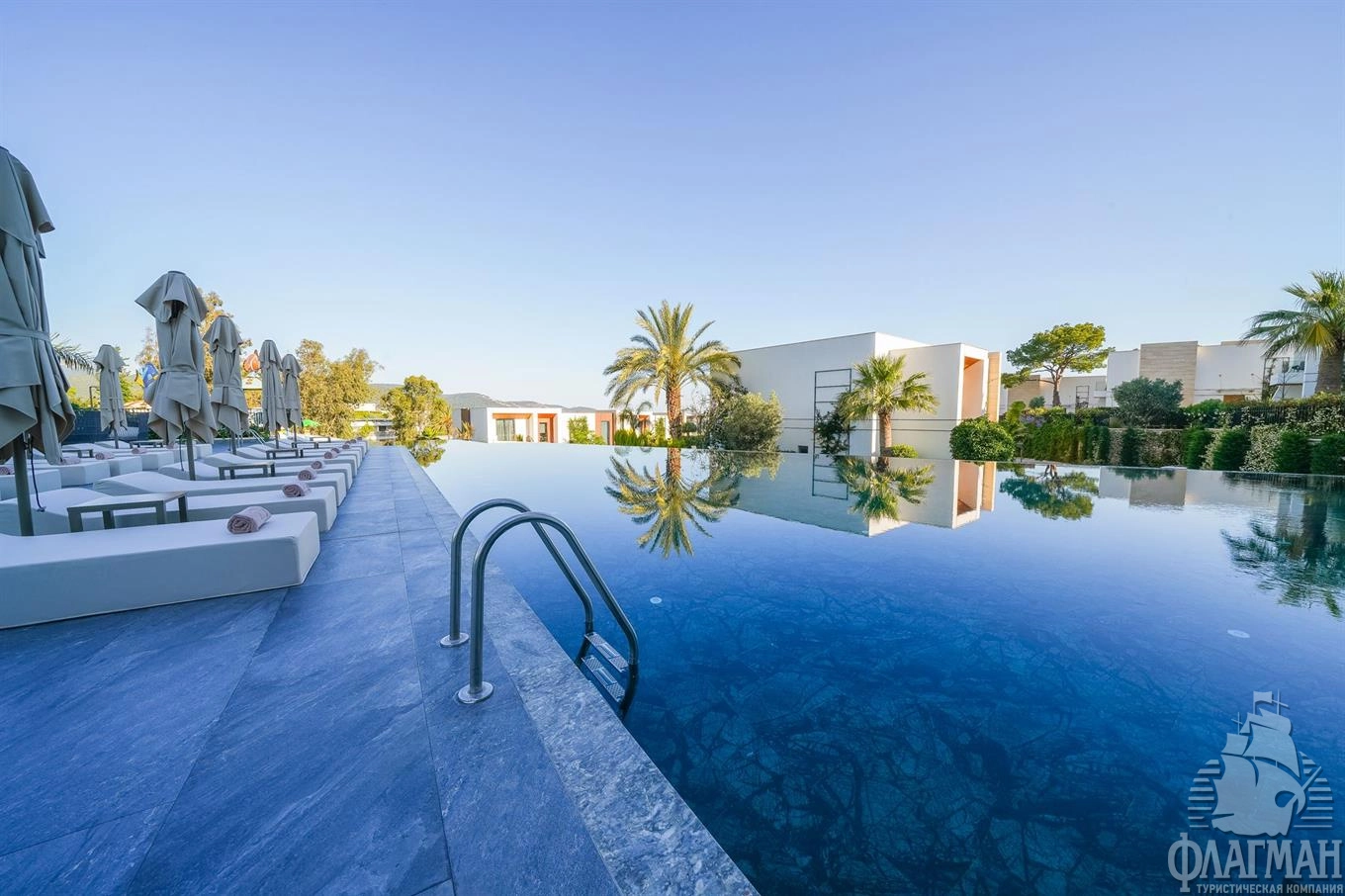 Норм Коллекшен Дора 5* хороший отель на первой береговой линии Эгейского моря в 10 км от Бодрума в посёлке Торба. Открыт в 2021 году и реновирован в 2023–2024 гг. Приватная территория с песчано-галечным пляжем (130–250 м), с несколькими бассейнами (в т.ч. крытым) и современным дизайном в стиле «минимализм-люкс» создает атмосферу спокойного отдыха. Гостям предлагается концепция Ultra All Inclusive с круглосуточным обслуживанием, 5 барами, 4 ресторанами à la carte (включая итальянский, турецкий и рыбный) и импотными напитками. Номера (от 40 м²) и виллы (до 500 м²) оснащены кофемашинами, террасами и видами на море, а инфраструктура включает спа-центр с хаммамом, фитнес и теннис. Отель ориентирован на ценителей тишины и гастрономии: нет массовой анимации, но предусмотрены йога и детские услуги (няня, клуб). Рекомендуем для комфортного семейного отдыха с детьми.