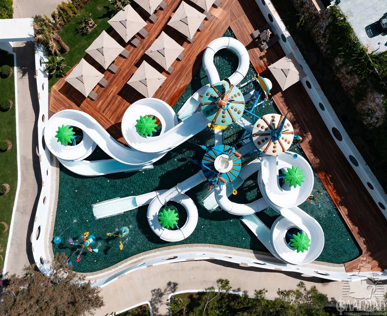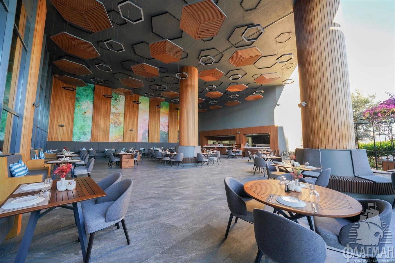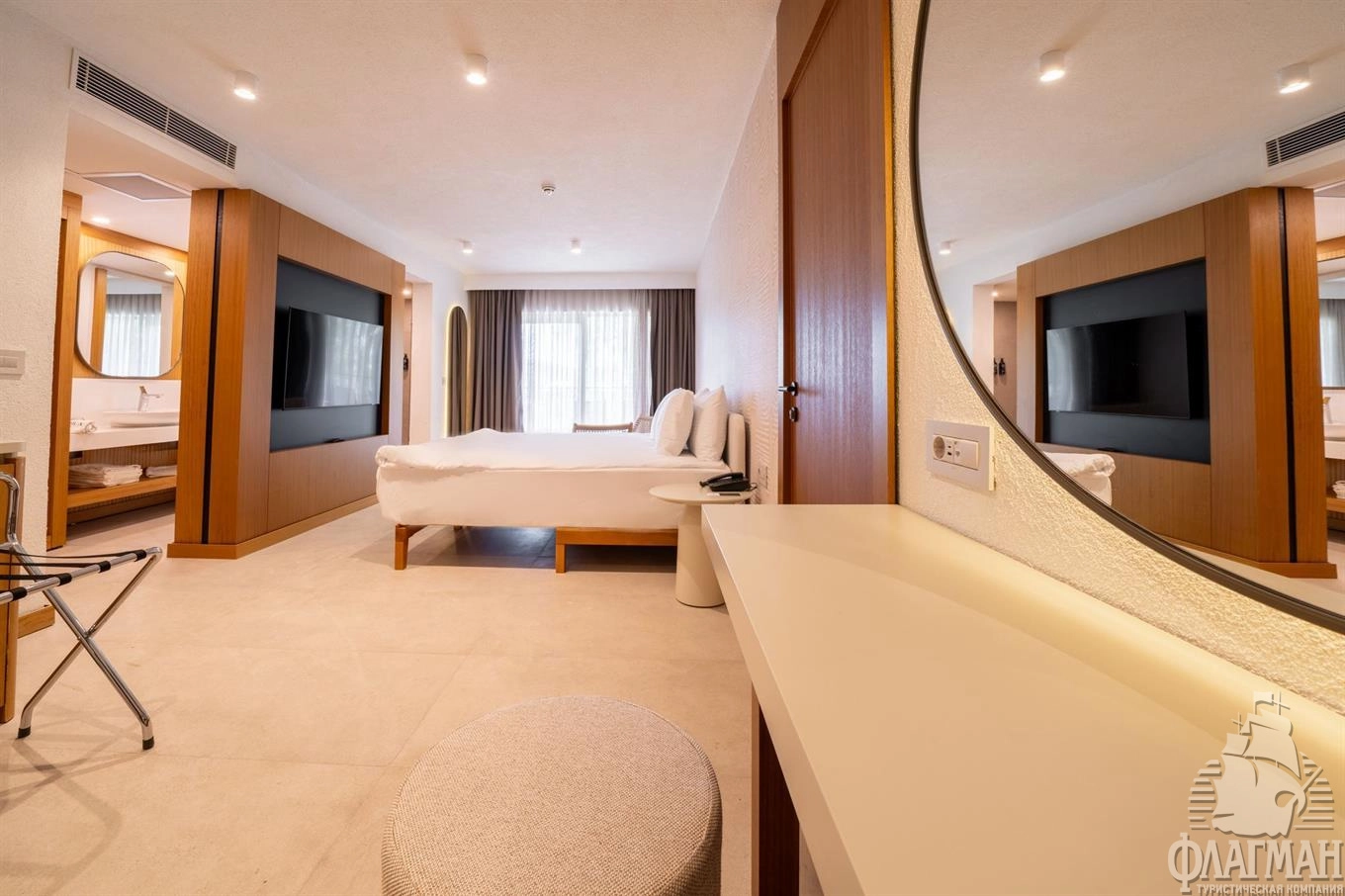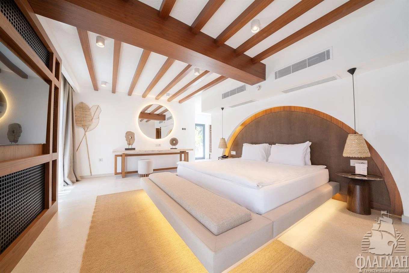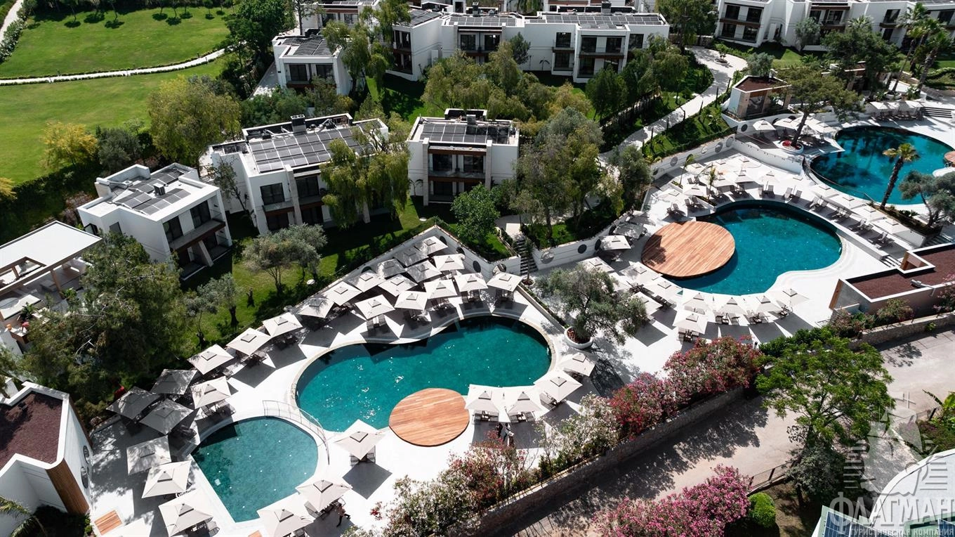 Норм Коллекшен Дора 5* хороший отель на первой береговой линии Эгейского моря в 10 км от Бодрума в посёлке Торба. Открыт в 2021 году и реновирован в 2023–2024 гг. Приватная территория с песчано-галечным пляжем (130–250 м), с несколькими бассейнами (в т.ч. крытым) и современным дизайном в стиле «минимализм-люкс» создает атмосферу спокойного отдыха. Гостям предлагается концепция Ultra All Inclusive с круглосуточным обслуживанием, 5 барами, 4 ресторанами à la carte (включая итальянский, турецкий и рыбный) и импотными напитками. Номера (от 40 м²) и виллы (до 500 м²) оснащены кофемашинами, террасами и видами на море, а инфраструктура включает спа-центр с хаммамом, фитнес и теннис. Отель ориентирован на ценителей тишины и гастрономии: нет массовой анимации, но предусмотрены йога и детские услуги (няня, клуб). Рекомендуем для комфортного семейного отдыха с детьми.