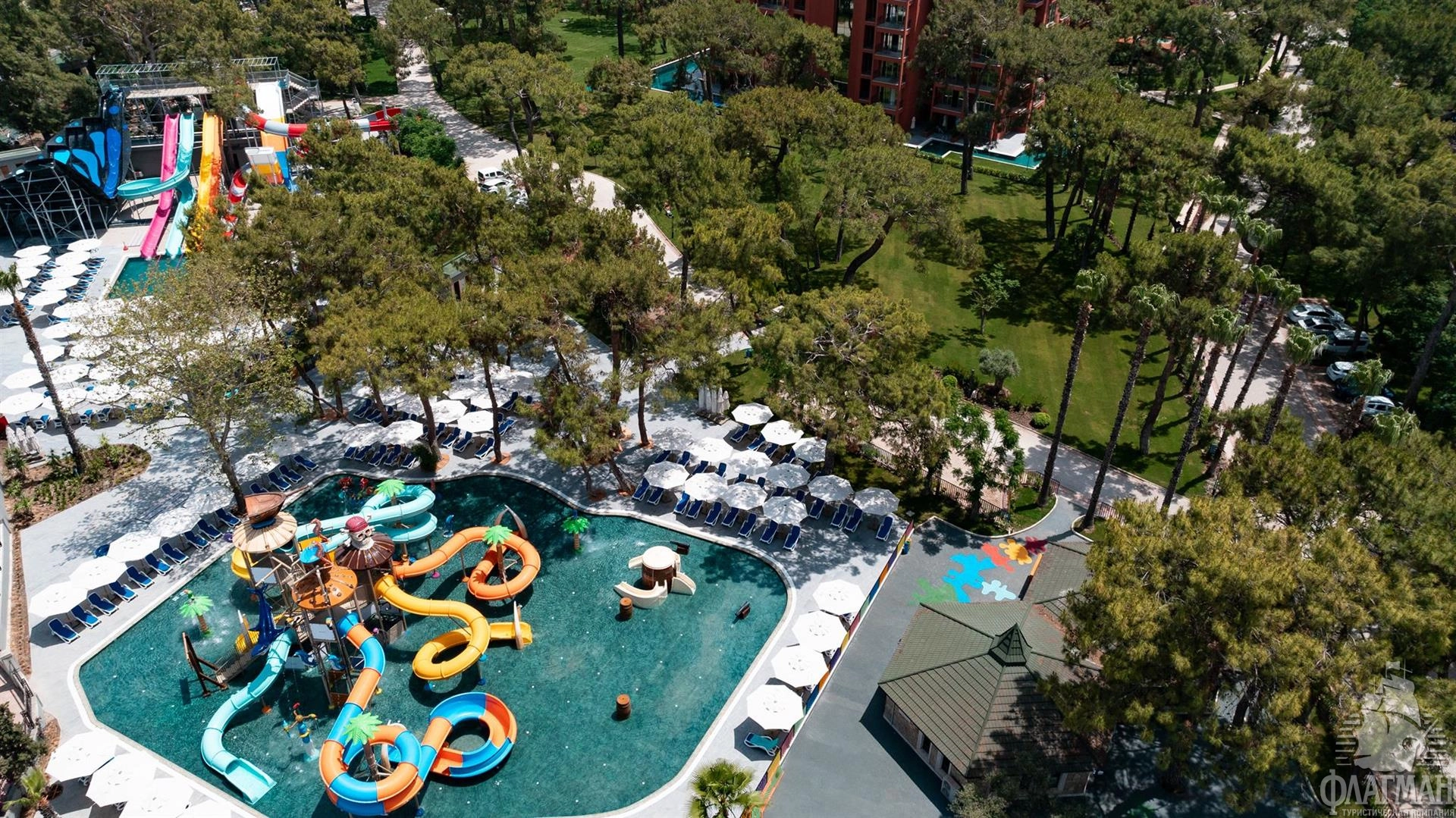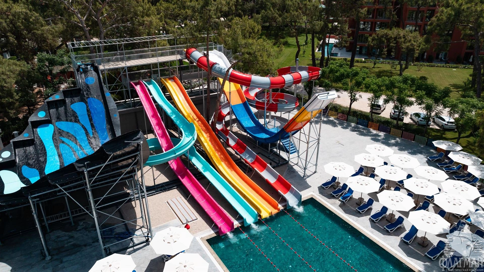 - открытый бассейн с 7 горками, 95 кв.м