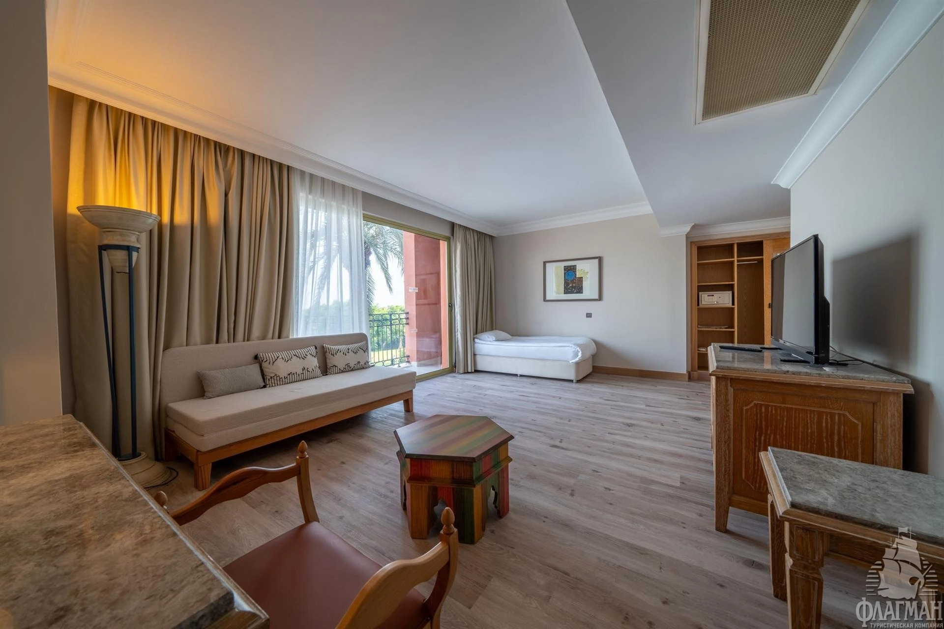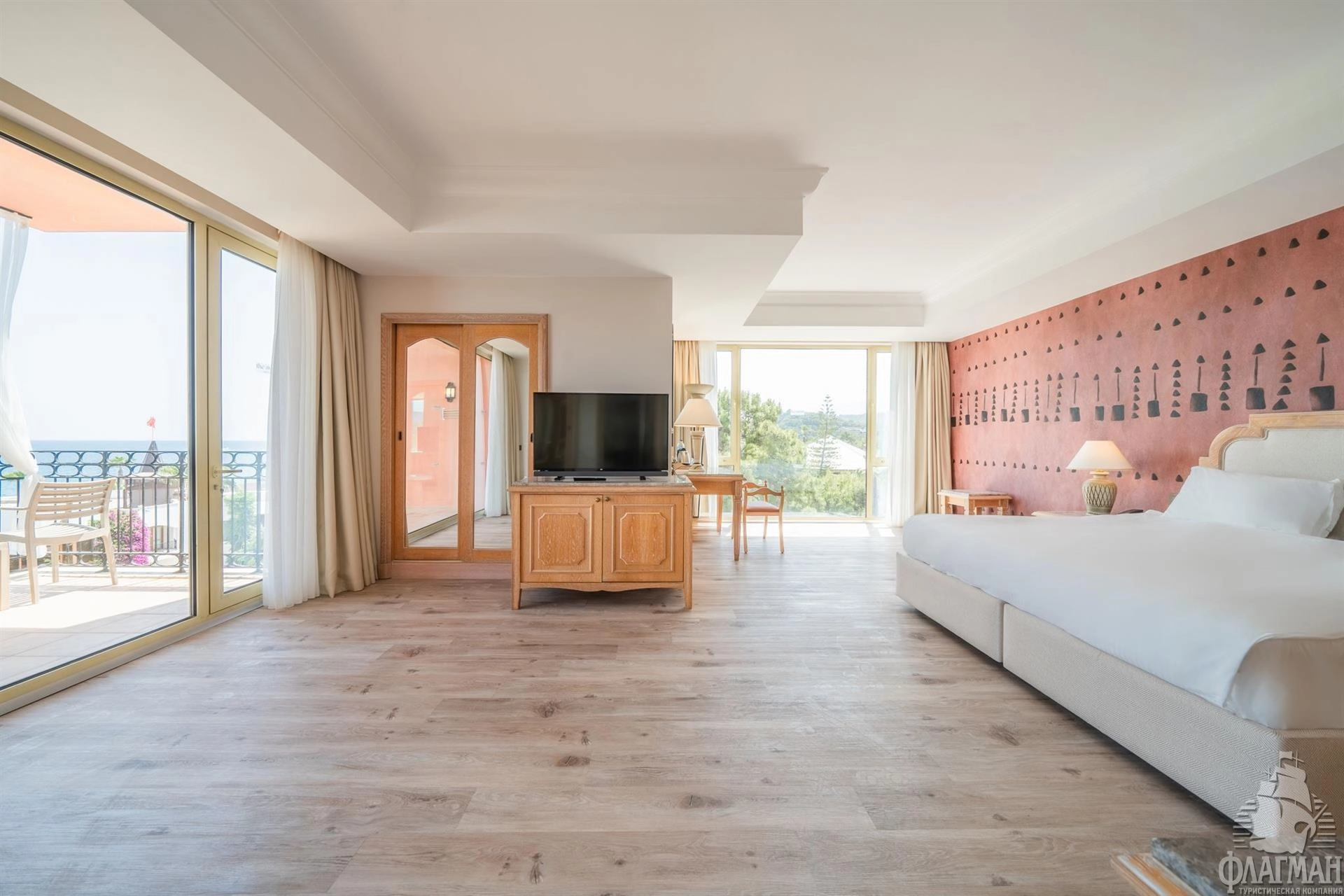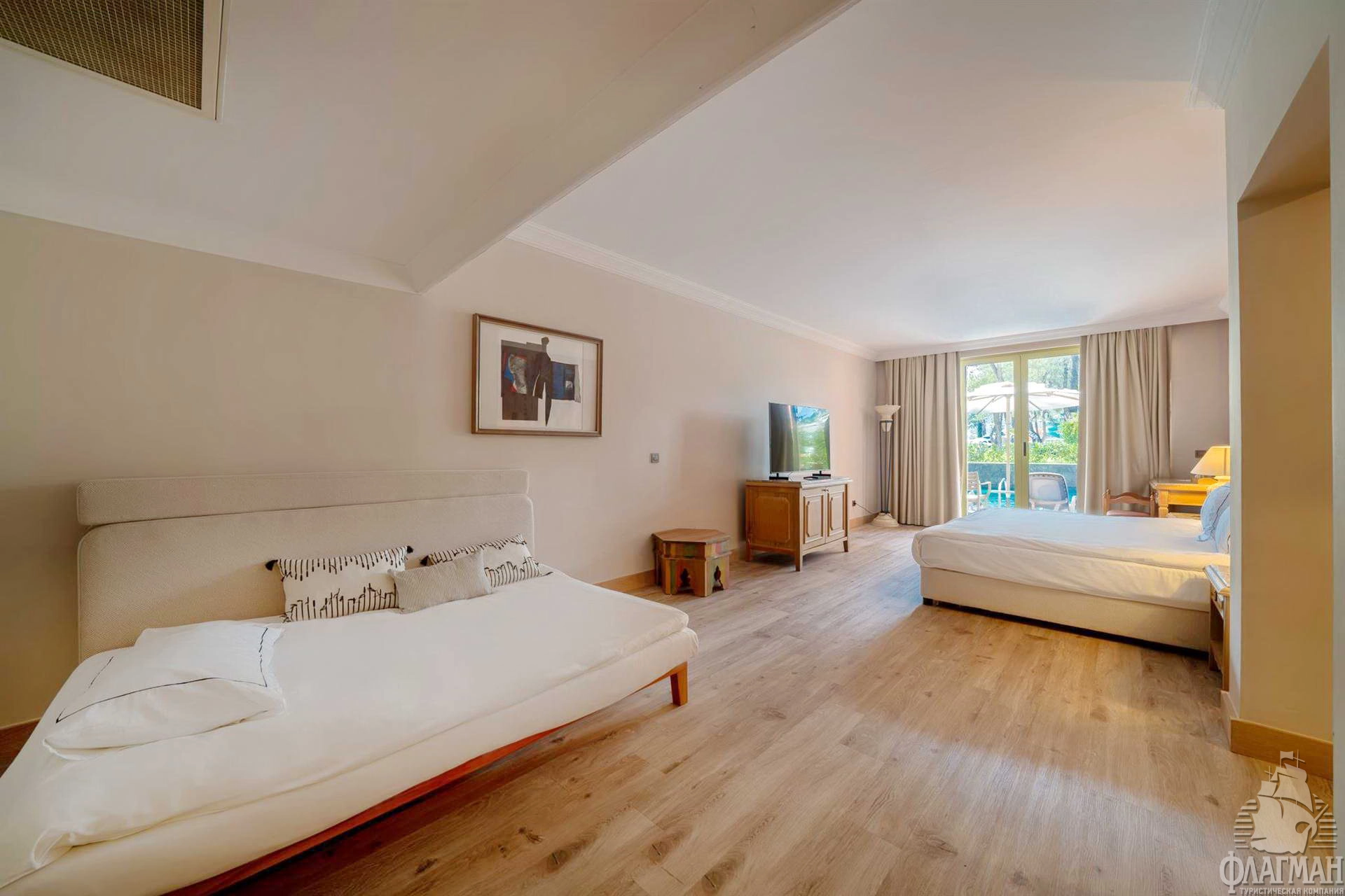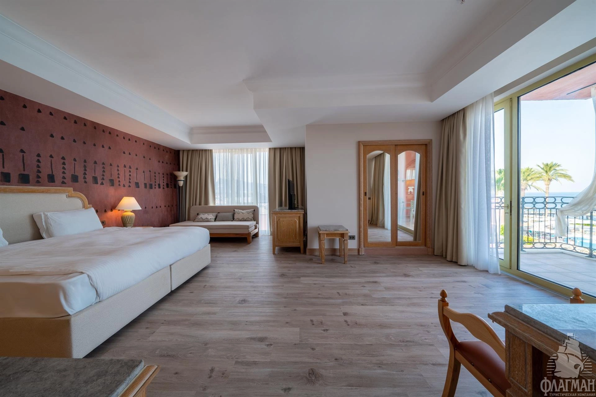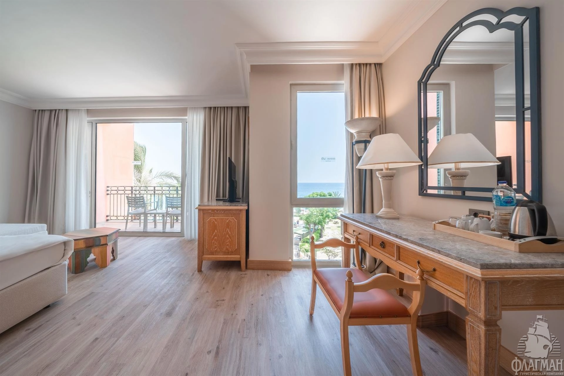 - Main building family sea view - номер: 56 кв.м, гл.спальня и детская спальня без двери (двуспальная кровать и 2 односпальные; во второй спальне нет окна), 1 ванная комната (душ), балкон, макс. 4+инф.