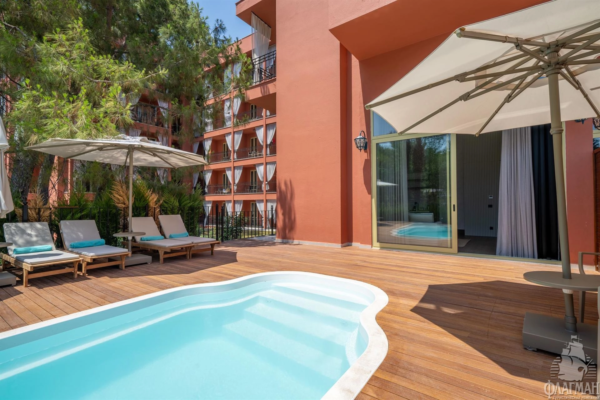 - Loft deluxe with private pool - номер: 62 кв.м, спальня (двуспальная кровать или 2 односпальные), кухня, 1 ванная комната (душ), терраса, бассейн, макс. 2+1+инф.