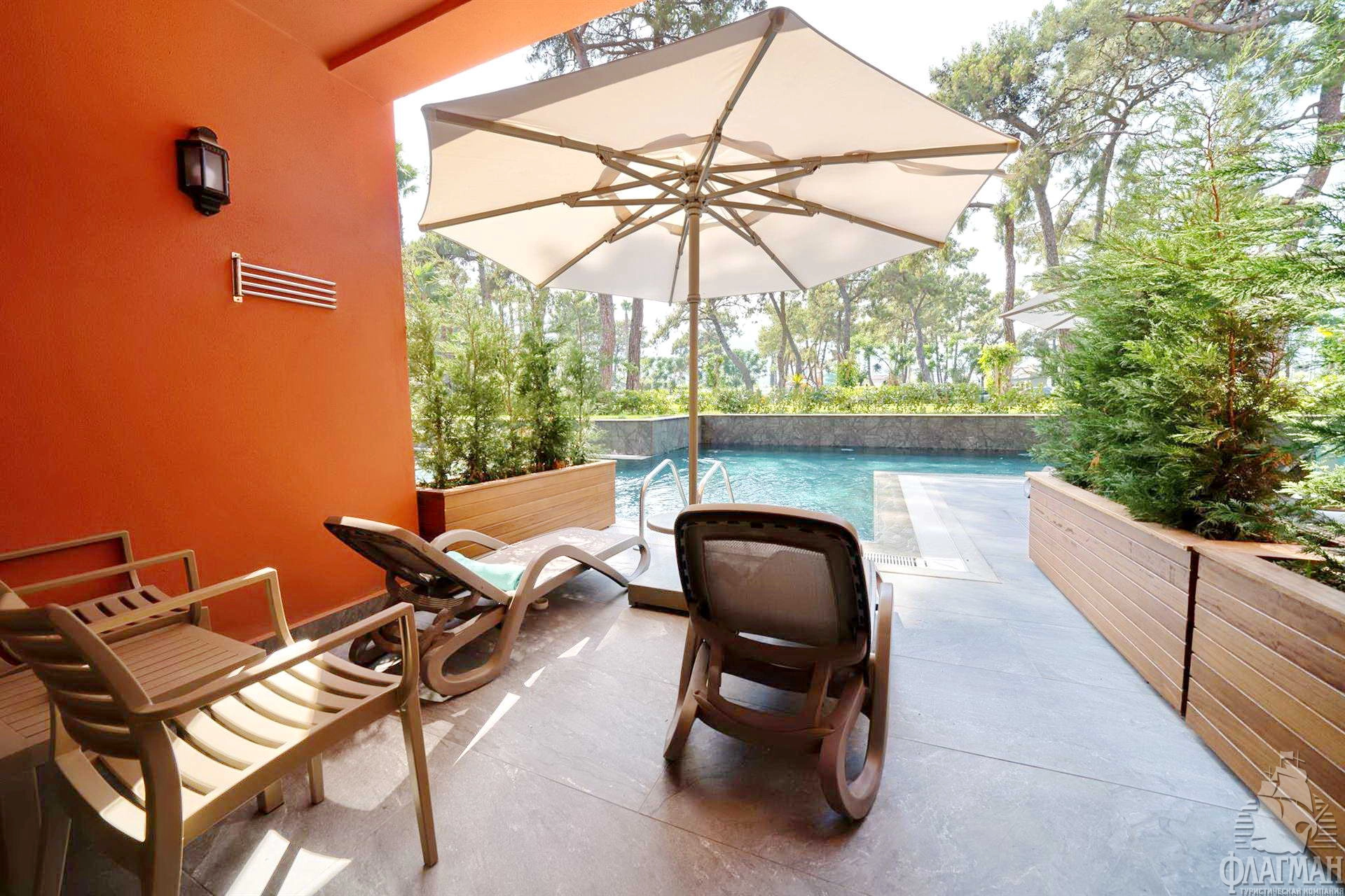 - Loft premium suite with private pool - номер: 132-140 кв.м, 2 спальни, гостиная, кухня, гардеробная, 2 ванные комнаты (душ), терраса, бассейн, вид на окрестности, макс. 6 чел.
