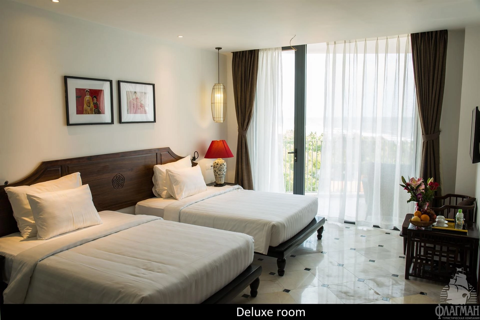 - Deluxe room with balcony (30-35 кв.м, макс. 3 взрослых) - спальня (dbl bed/twin beds), ванная комната, балкон с видом на сад/море, номера расположены в главном здании на 1-9 этажах
