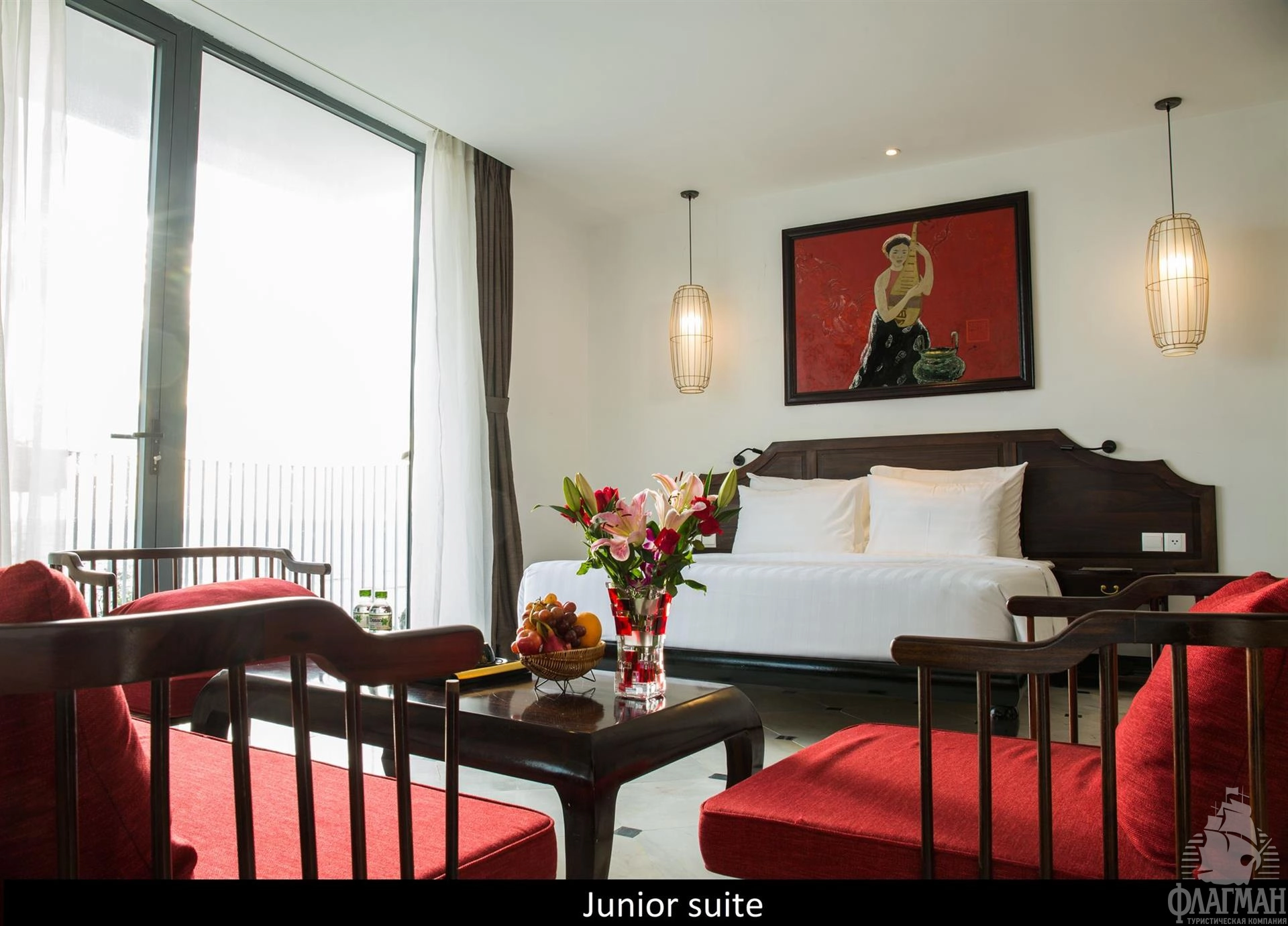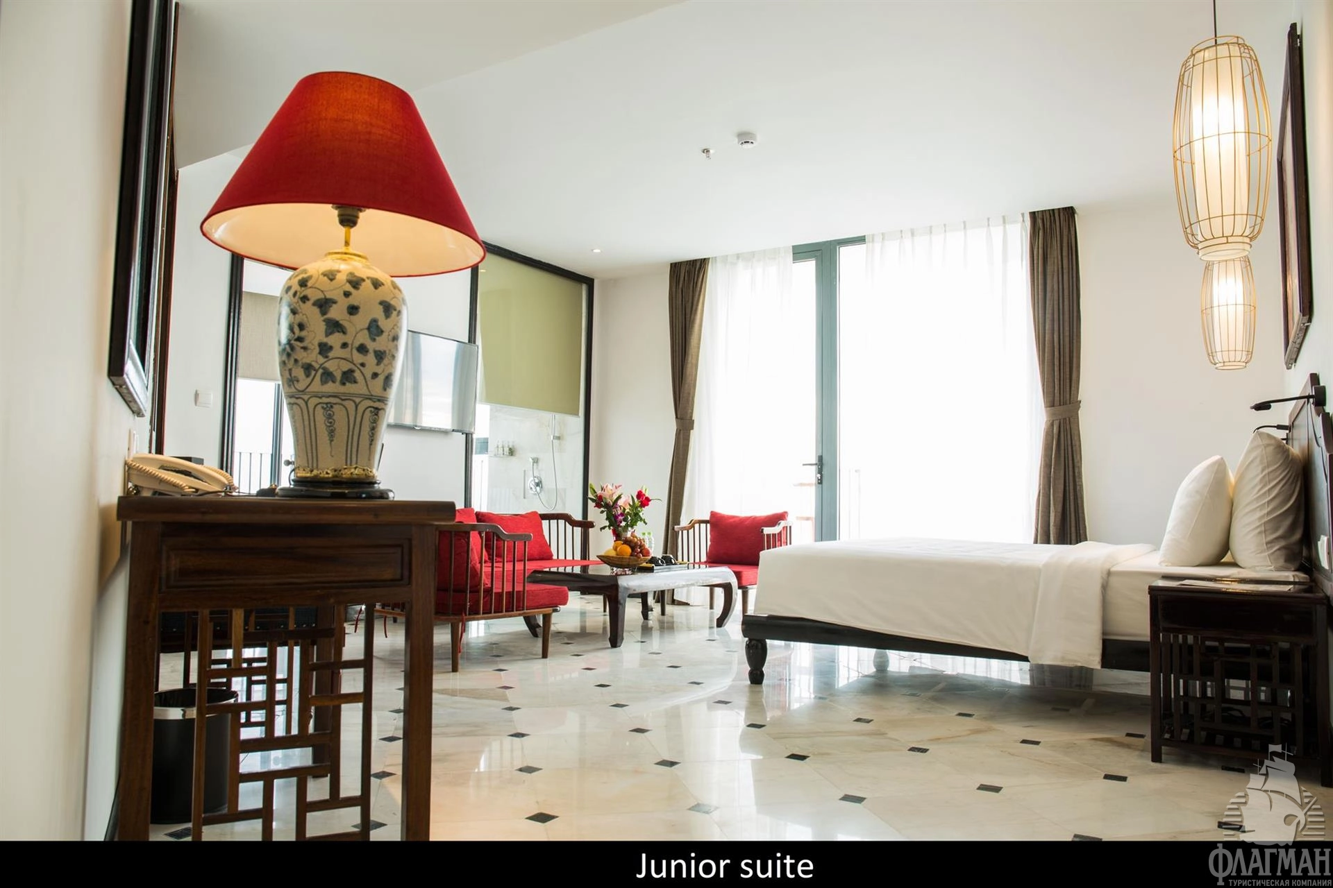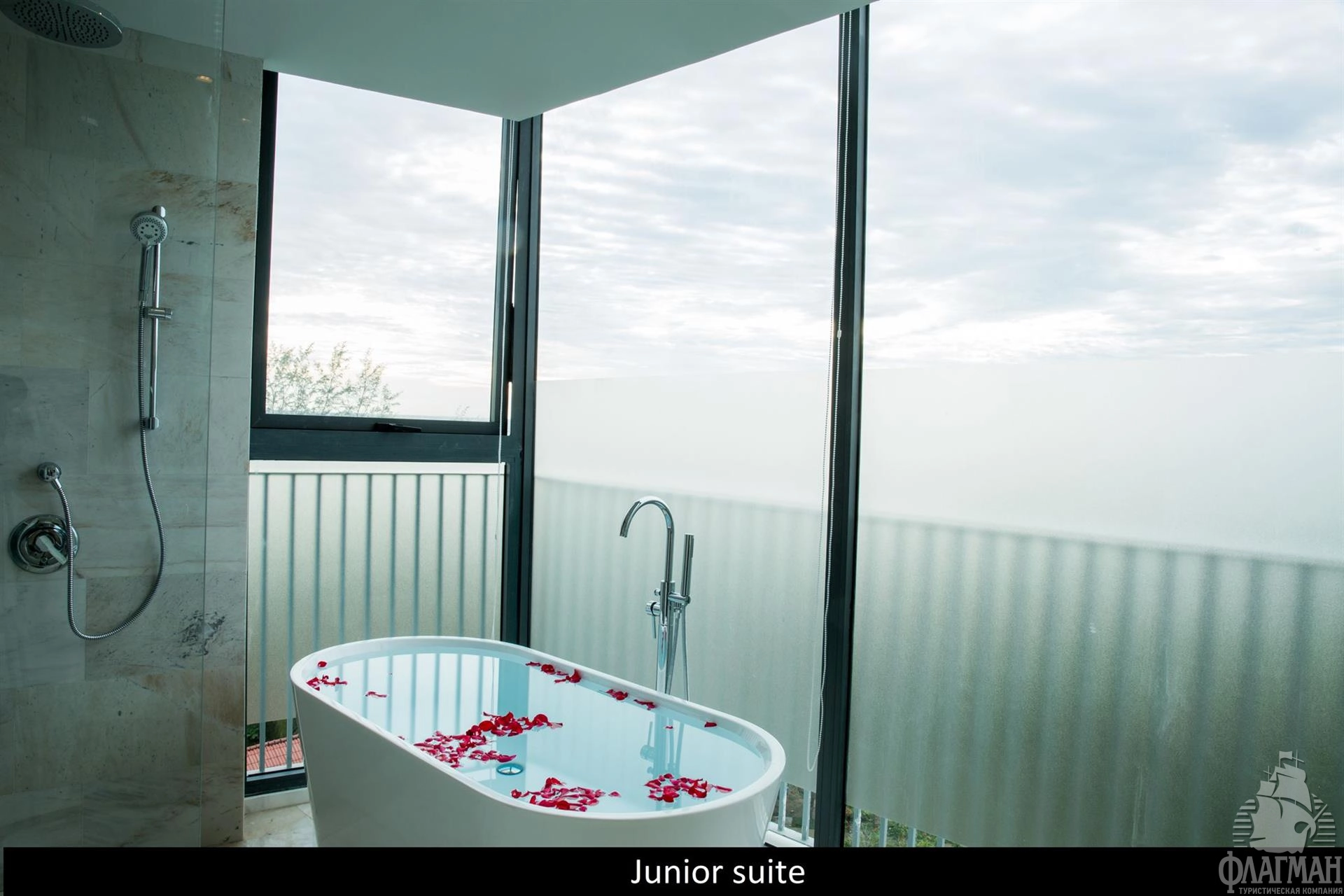 - Junior suite with balcony (45 кв.м, макс. 3 взрослых) - спальня (dbl bed), ванная комната, балкон с видом на море, номера расположены в главном здании на 5-9 этажах